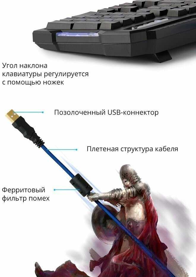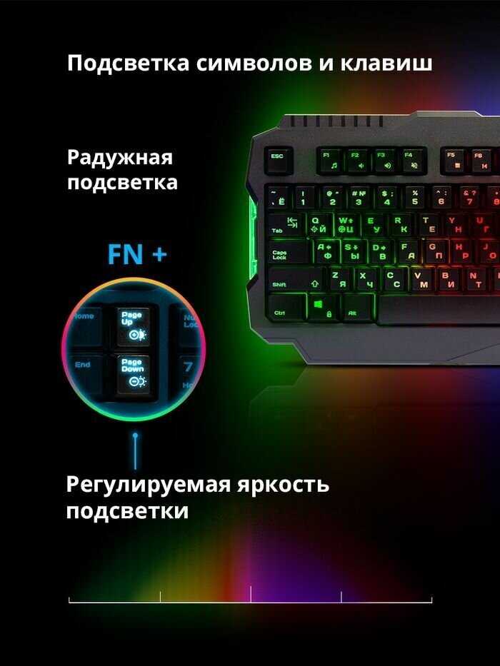 Я не вообще эксперт по клавиатурам и никогда не пользовался ни механикой, ни другими премиальным клавиатурами. Поэтому для меня после обычной пластиковой жути Defender York C-777, клавиатура просто офигенна !Вообще после старой клавиатуры совсем другие ощущения, для начала нажатия, они здесь приятные. Буква печатается уже на половине нажатия клавиатуры, клавиши эргономичные, пальцы лежат комфортно да сама клавиатура просторная, находятся на разных высотах, клавиша пробела с пружинами и с амортизатором если не ошибаюсь, клавиша шифт тоже, но без амортизатора. Подсветка, она здесь классная, яркая, но как я и сказал клавиши по бокам немного тусклее, имеют 7 цветов и 1 разноцветный, ест различные переливания, можно регулировать яркость 4 ступенями и регулировка скорости яркости, есть реагирование на звук, но это баловство. Небольшой недостаток, может конкретно у меня так, но у клавиши пробела есть небольшой люфт поэтому происходит постукивание, это связано с тем что вот длинные металлический прутик внизу не ровно ложится на пластмасс, поймёте о чём я если взглянете после покупки. И поэтому левая часть пробела без постореннего звука нажимается, а правая нет. Безусловно клавиатура стоит своих денег, это очень хорошая мембранка, а играть в игры мне на нём одно удовольствие !