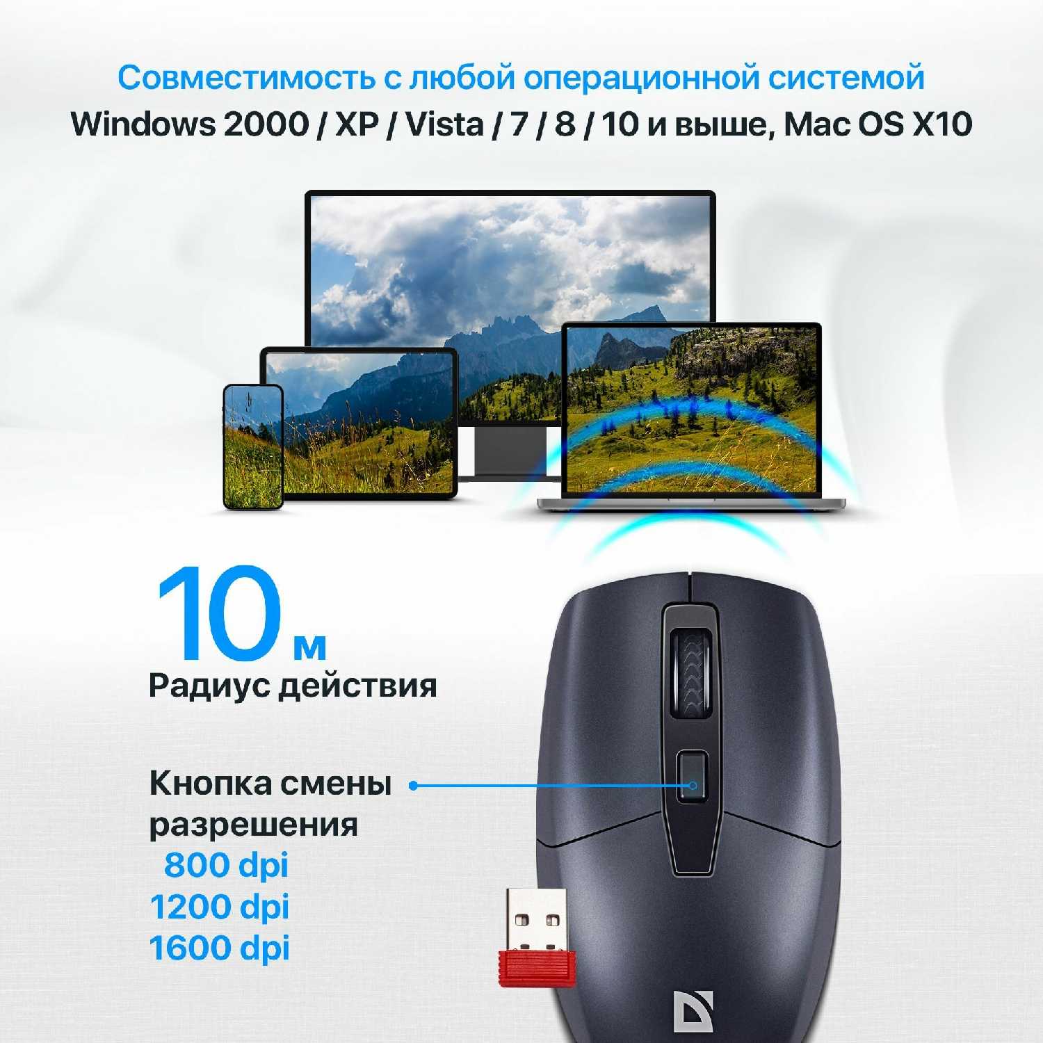 | Дополнительная информация : | Кнопка смены разрешения, Прочные тефлоновые ножки, Материал корпуса пластик, Специальный отсек в корпусе, Возможность изменения оптического разрешения, симметричный, Прорезиненное покрытие корпуса, Удобная симметричная форма, Точный и надёжный сенсор, Работа от батареи до 6 месяцев |