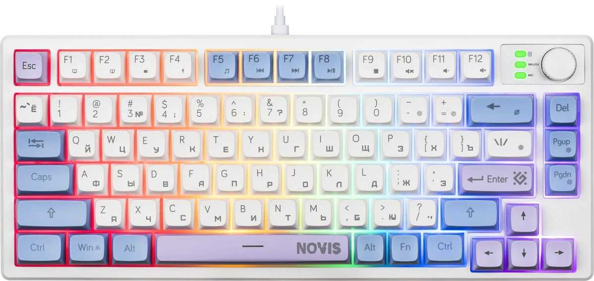 - Несминаемые кейкапы из полупрозрачного пластика не стираются со временем, поддерживая четкость символов и долговечность внешнего вида.