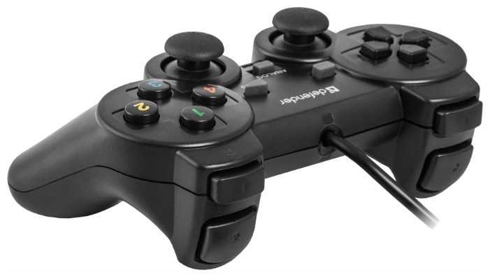 - + Хорошего качества геймпад, стики и кнопки работают без нареканий. Удобно лежит в руке, довольно компактен в размерах. Сверхнизкая стоимость, ничего лучше за такой ценник не найти. Два неплохих вибро мотора на борту. Большой длины кабель. Компьютер без проблем нашёл геймпад при первом подключении, но и драйвера потом установил с сайта Defender для корректной работы.