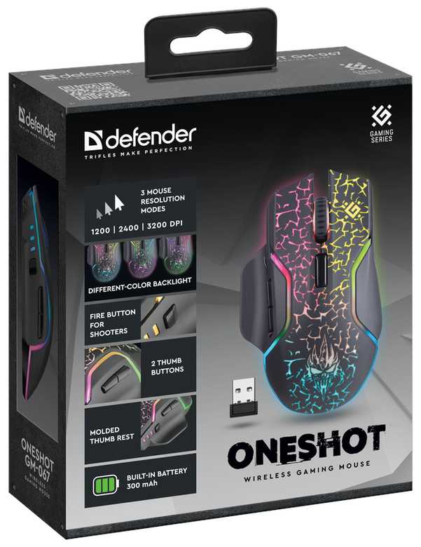 Отзывы о Мышь беспроводная игровая Defender Oneshot GM-067