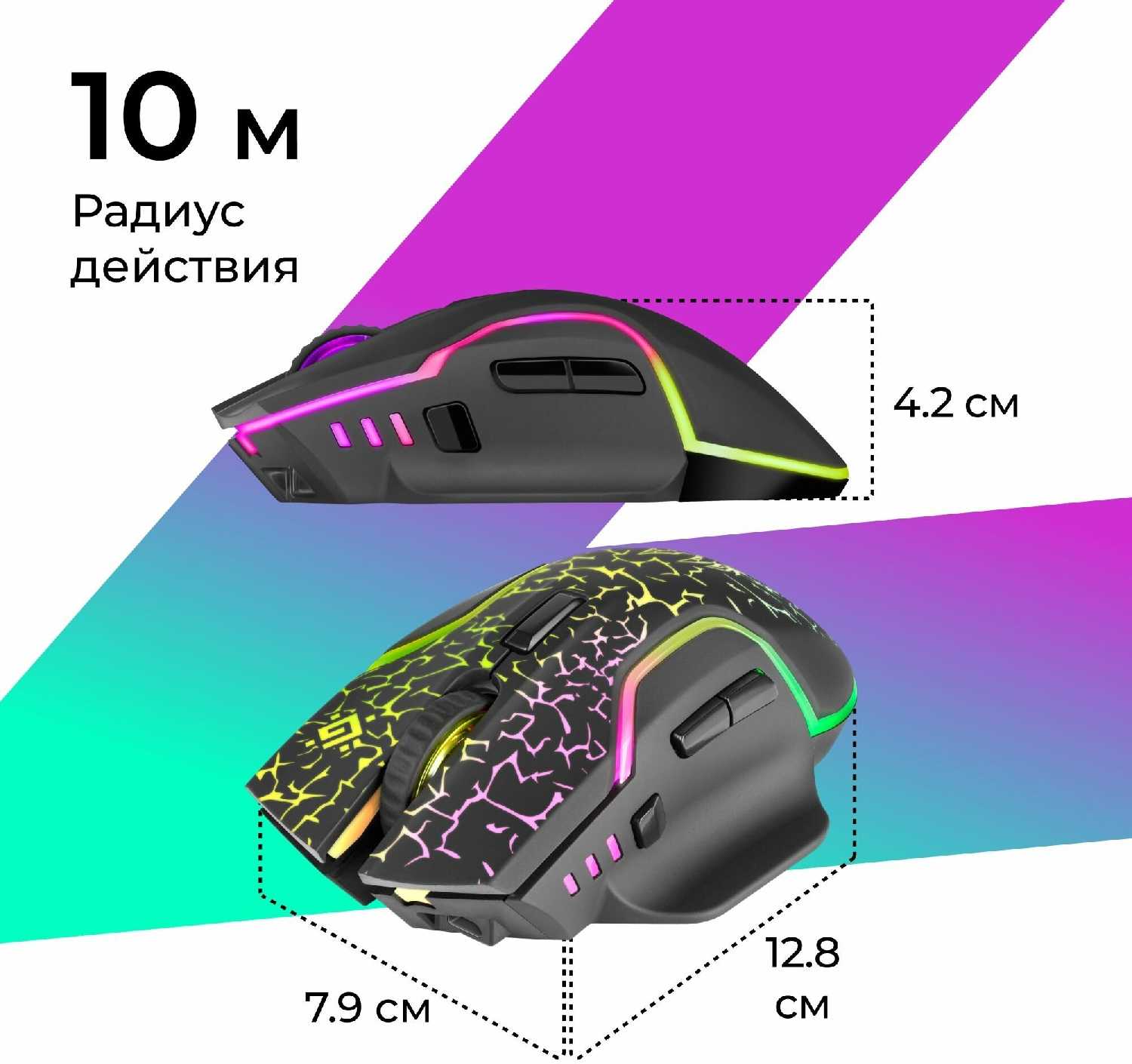 Игровые характеристики и целевая аудитория: Несмотря на позиционирование как "игровой", мышь имеет серьезные ограничения для гейминга. Основные претензии – "срывы" курсора при резких движениях в динамичных играх (шутерах), ощутимая задержка отклика (упоминается 21 мс, что много для конкурентных игр), неудобное расположение критически важных в играх боковых кнопок (Fire). Надежность беспроводного соединения также не всегда достаточна для игр. Модель лучше всего подходит для непритязательных одиночных игр или нединамичных жанров. Идеальная целевая аудитория – подростки, пользователи с большими руками, ценящие яркий дизайн и базовый игровой функционал за небольшие деньги, а также офисные работники, которым полезны программируемые кнопки для автоматизации рутинных задач в программах типа 1С, при условии, что их устраивает эргономика и они не сталкиваются с проблемами стабильности связи/отклика.