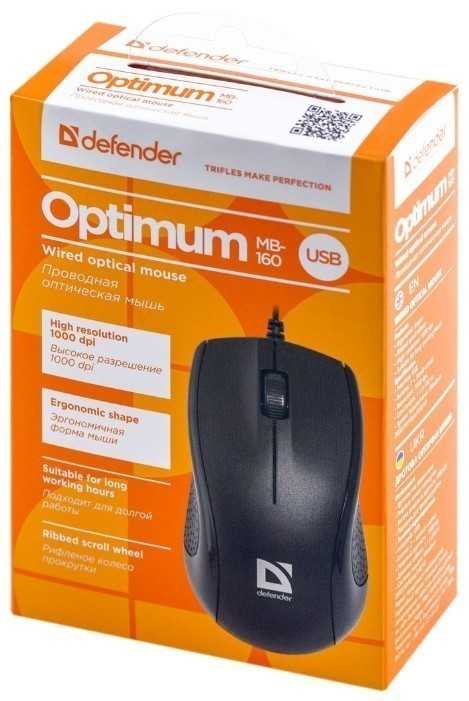 Отзывы о Мышь компьютерная проводная, оптическая Defender Optimum MB-160 черный, 3 кнопки, 1000 dpi