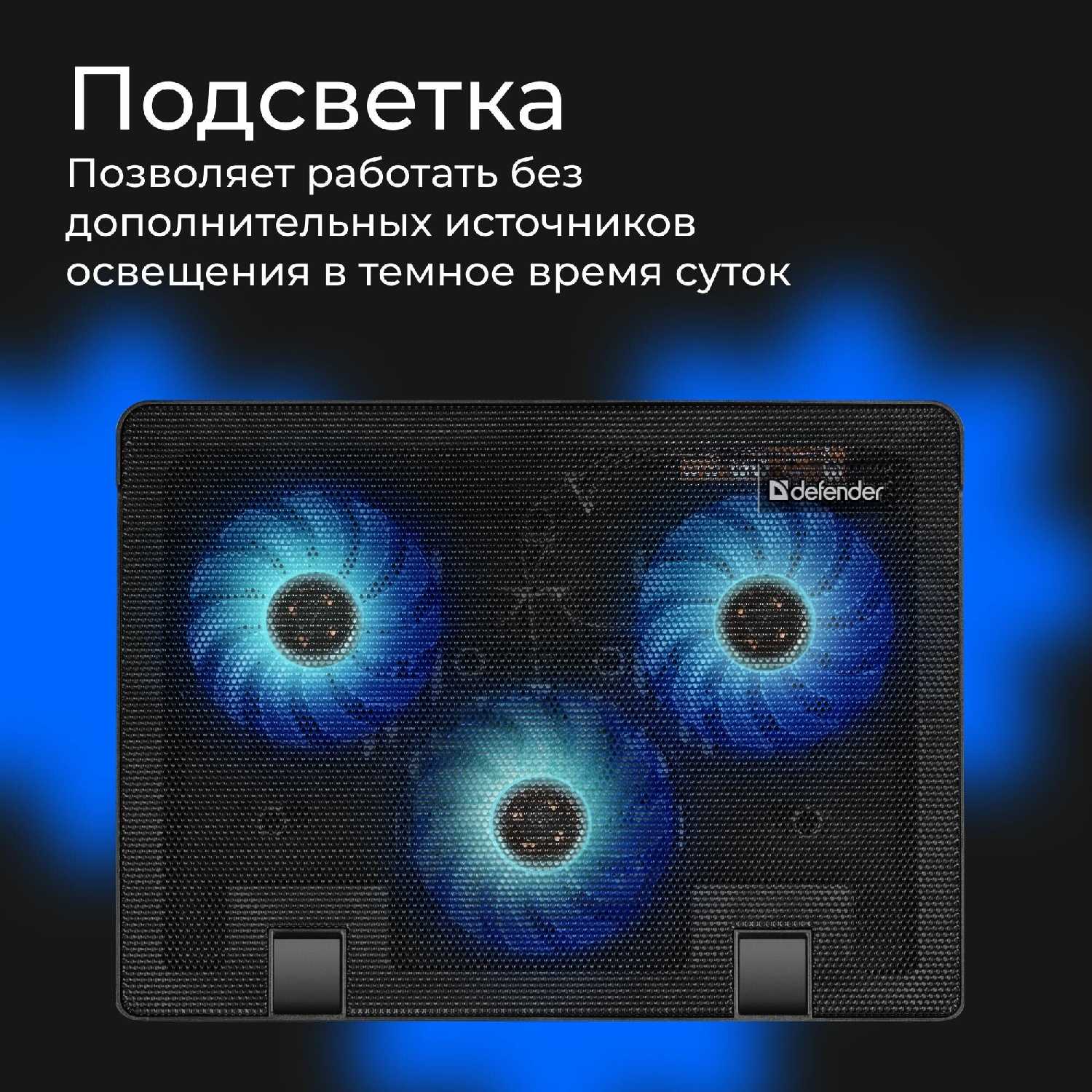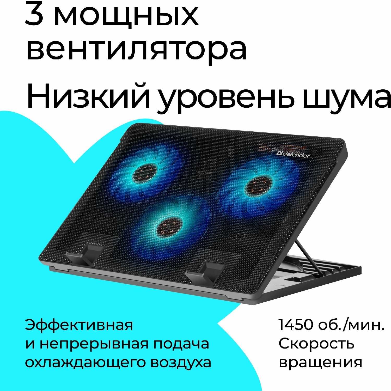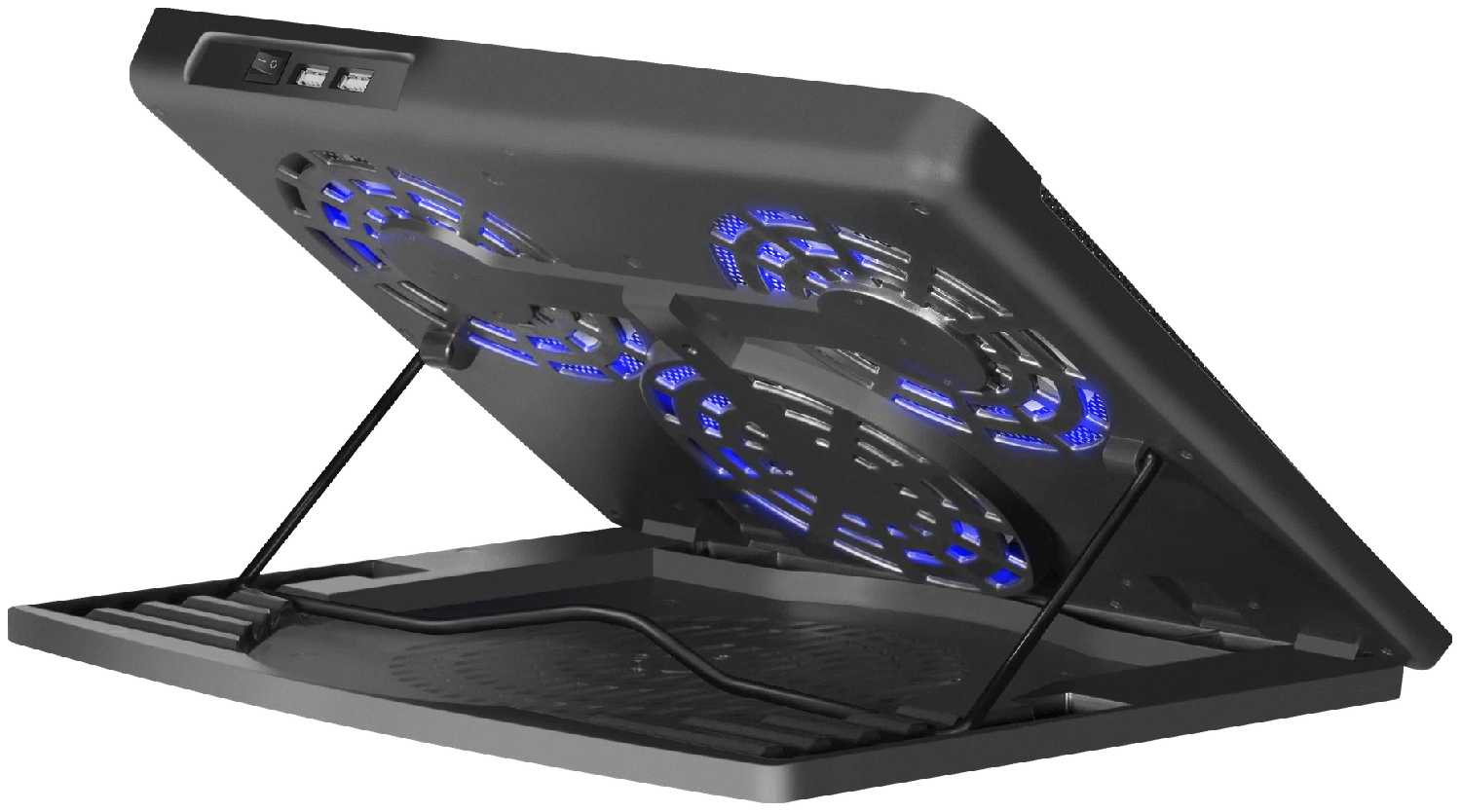 - Конструкция с зазором между дном подставки и вентиляторами позволяет использовать её даже на мягких поверхностях (например, на одеяле или коленях), не блокируя воздухозаборники и не выводя кулеры из строя.
