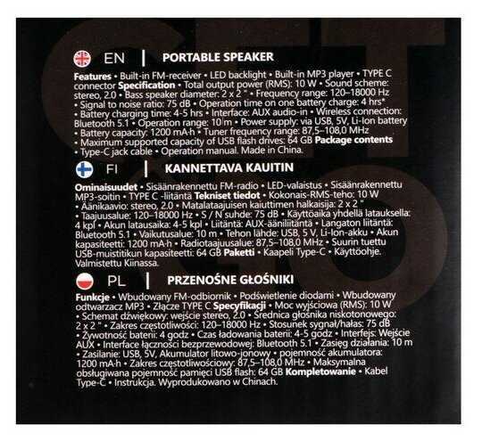 Удобная по размеру колонка звук хороший,басы не большие присутствуют ,цена с бонусами привлекательная,радио ловит нормально,с карты памяти звук отличный ,