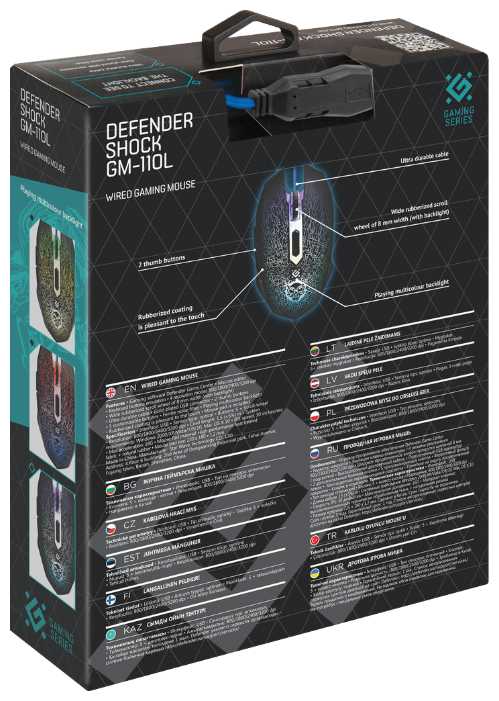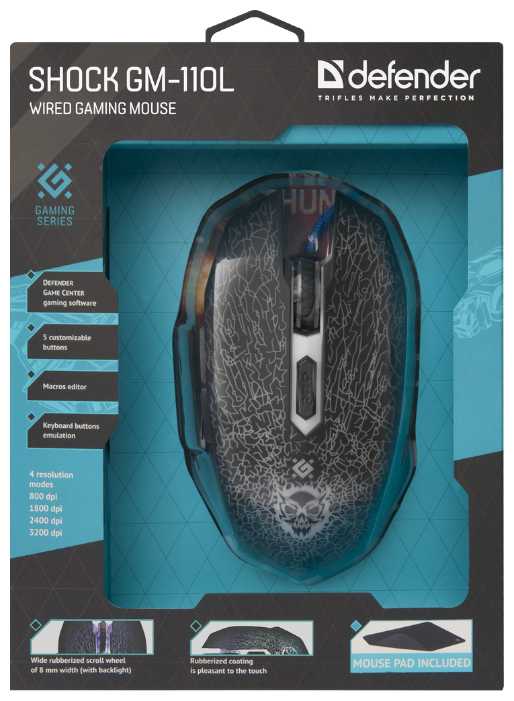 | Дополнительная информация : | 4 режима разрешения мыши выбор кнопкой: 800/1800/2400/3200 dpi, 2 дополнительные боковые кнопки, позолоченный USB-коннектор прорезиненное колесо прокрутки шириной 8 мм с подсветкой высокопрочный долговечный кабель ферритовый фильтр помех прорезиненное покрытие программное обеспечение Defender Game Center, редактор макросов, эмуляция клавиш клавиатуры, размер коврика: 220 х 180 х 3 мм, системные требования для ПК: Windows 2000/XP/Vista/7/8/10 Mac OS X10 |