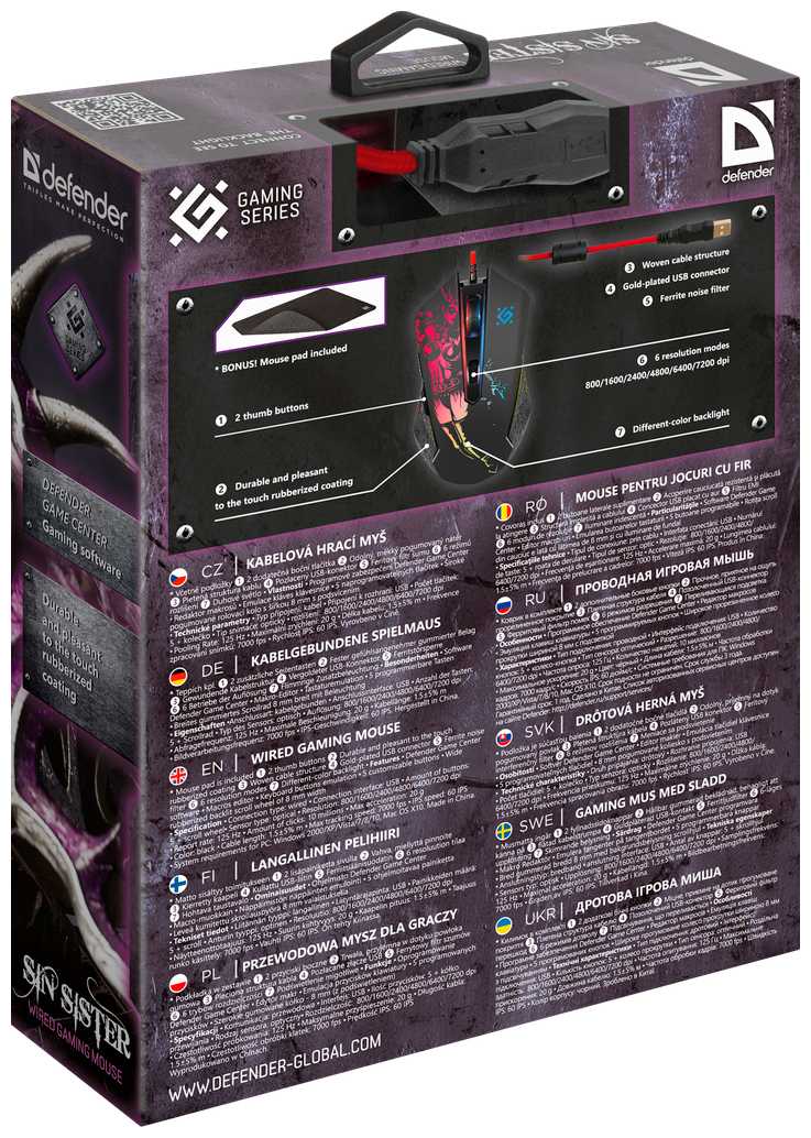 Характеристи Defender Sin'Sister оптика 6 кнопок 7200 dpi