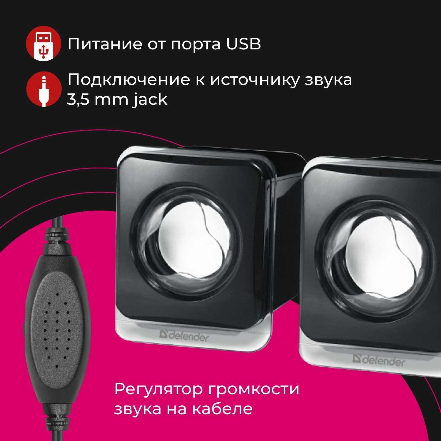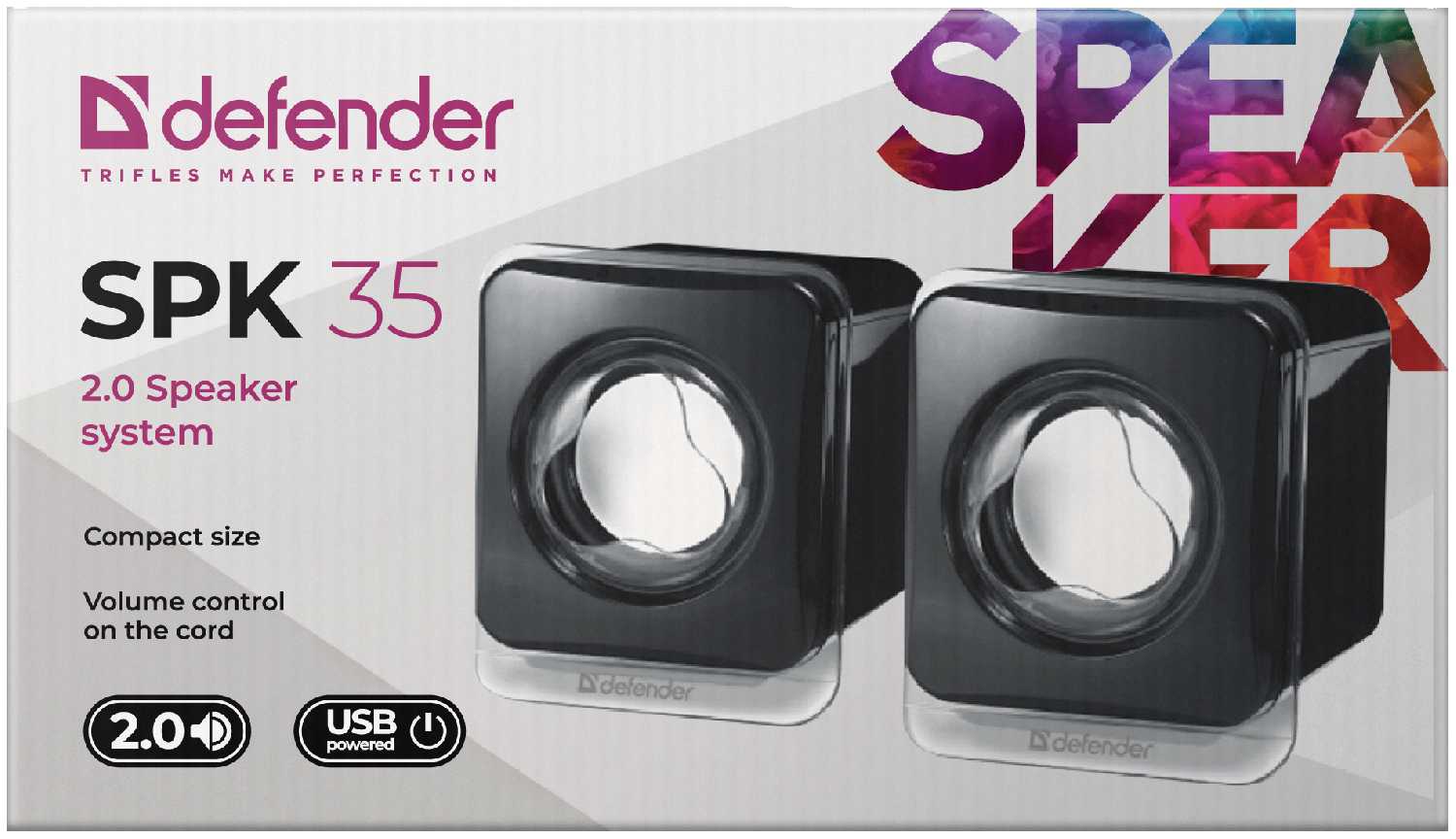 - + Колонки для компьютера DEFENDER SPK 35. Купил колонки для ноутбука, потому что своими силами он воспроизводит ужасный звук. Теперь радуюсь – музыка играет без хрипов и скрипов, а при просмотре кино, наконец, разборчиво слышны все слова. Надо только оговориться, что я не использую полную громкость и регулирую ее только на ноутбуке. Если выкручивать на самих колонках, то даже на половине мощности слышен отчетливый шум, не говоря уж о максимуме.