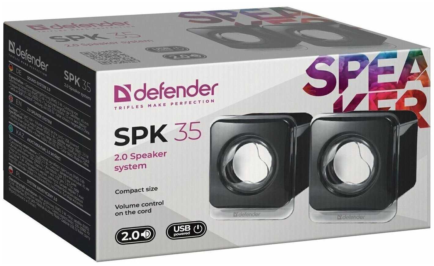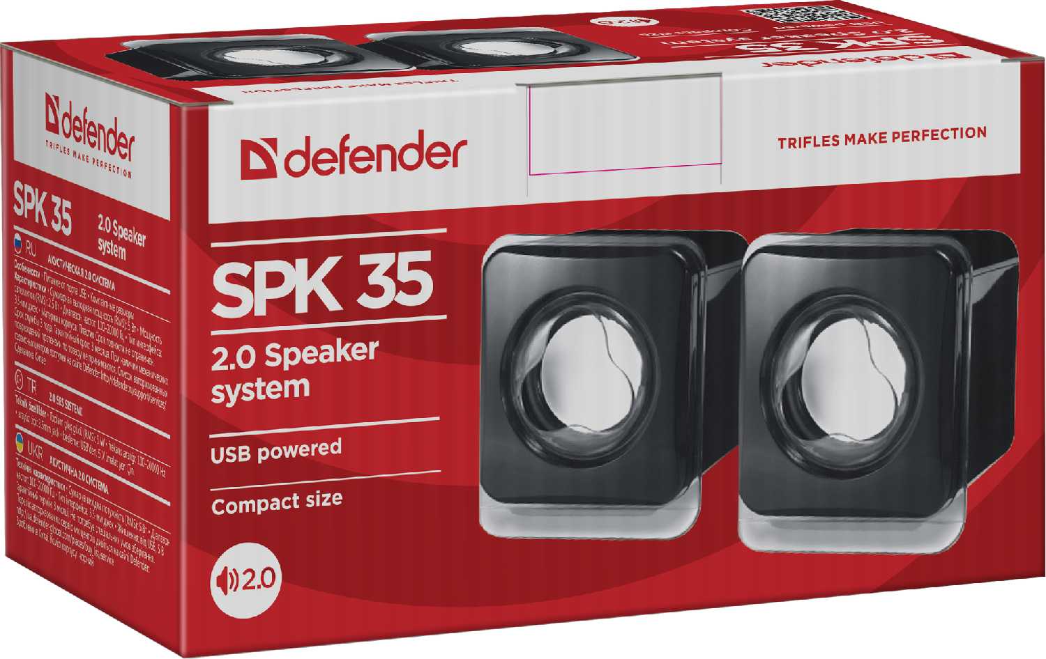 На фоне аналогов (SVEN MS-302, Airtone E-2031) Defender SPK-35 выигрывает за счёт деревянного корпуса и отсутствия "пластикового" призвука, но проигрывает в стабильности звука на пиковой громкости. Уникальная черта – попытка совместить компьютерные колонки с караоке-функционалом, однако реализация провальна: микрофонный тракт лишён элементарной обработки (компрессии, фильтров ВЧ), а "эхо" лишь маскирует, а не дополняет голос. При этом модель превосходит дешёвые 5.1 системы (вроде Genius) по надёжности – многие экземпляры служат 3–5 лет без поломок.