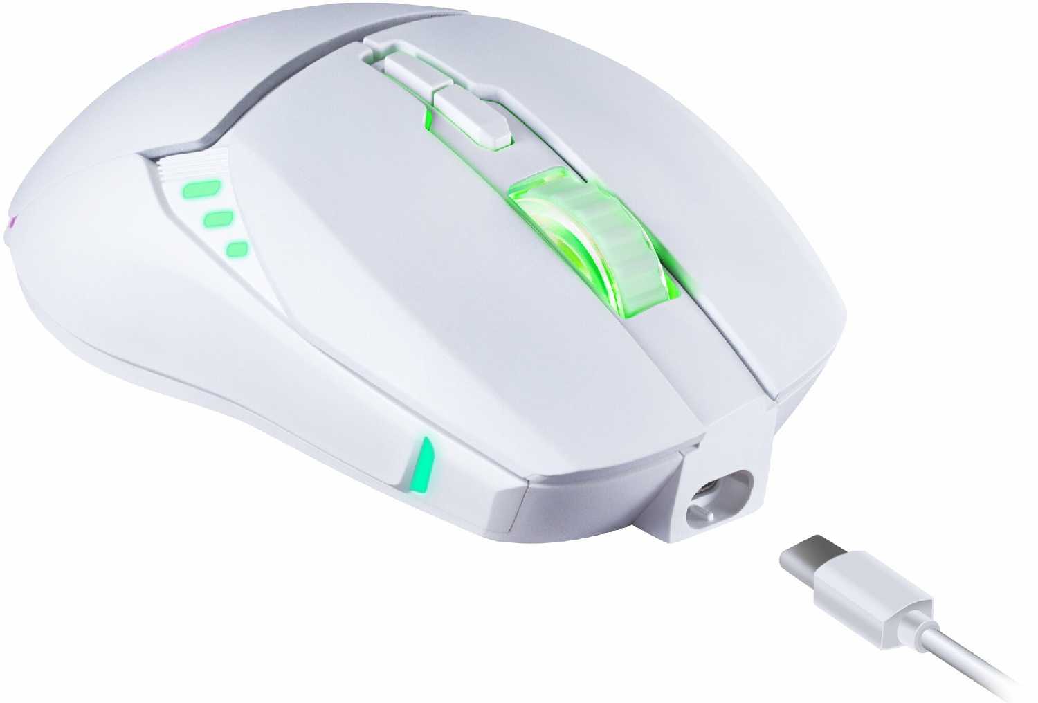 Подсветка автоматически переключает цвета, ручной выбор оттенков недоступен. Есть отдельная кнопка для полного отключения подсветки (режим ECO), что существенно экономит заряд: в этом режиме мышь работает "неделю и более" при активном использовании. Яркость RGB-подсветки описывают как "ненавязчивую", не вызывающую дискомфорта в темноте. -