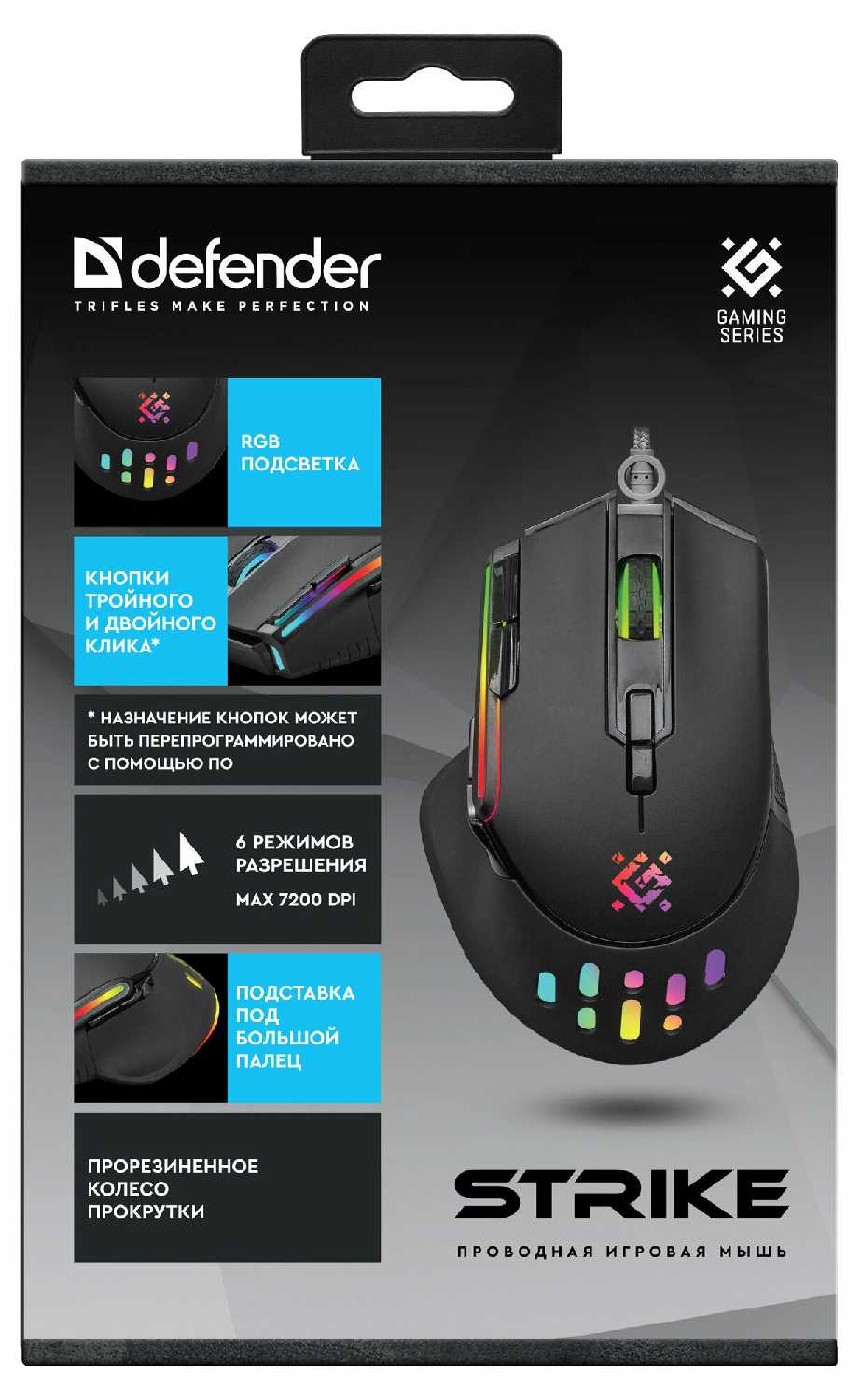 Дополнительная информация : | Материал корпуса - пластик/ ПВХ/ резина, Тканевая оплетка кабеля, Тип мыши - оптическая, Рабочее расстояние до 1.7 метров, Материал ножек - тефлон, Возможность изменения оптического разрешения, Скроллер, Прорезиненное покрытие корпуса, Редактор макросов, Силиконовое колесо, Ферритовый фильтр помех, Радужная подсветка |