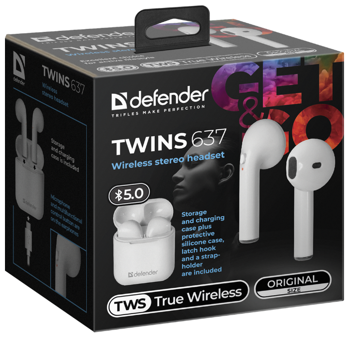 - - большие беспроводные наушники Defender Twins 637 White, бюджетный вариант, но при этом достойный внешний вид и хороший звук. Нажав на кнопку на наушниках, можно ответить на входящий звонок. Хорошо держит батарею. В комплект входит пенал для зарядки. Очень достойный экземпляр наушников за небольшие деньги.