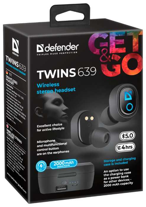 | Комплектация : | [Наушники с микрофоном беспроводные Defender Twins 639, Bluetooth 5.0, TWS, powerbank 2000мАч, разъем Micro-USB, черный] X 2 шт. |