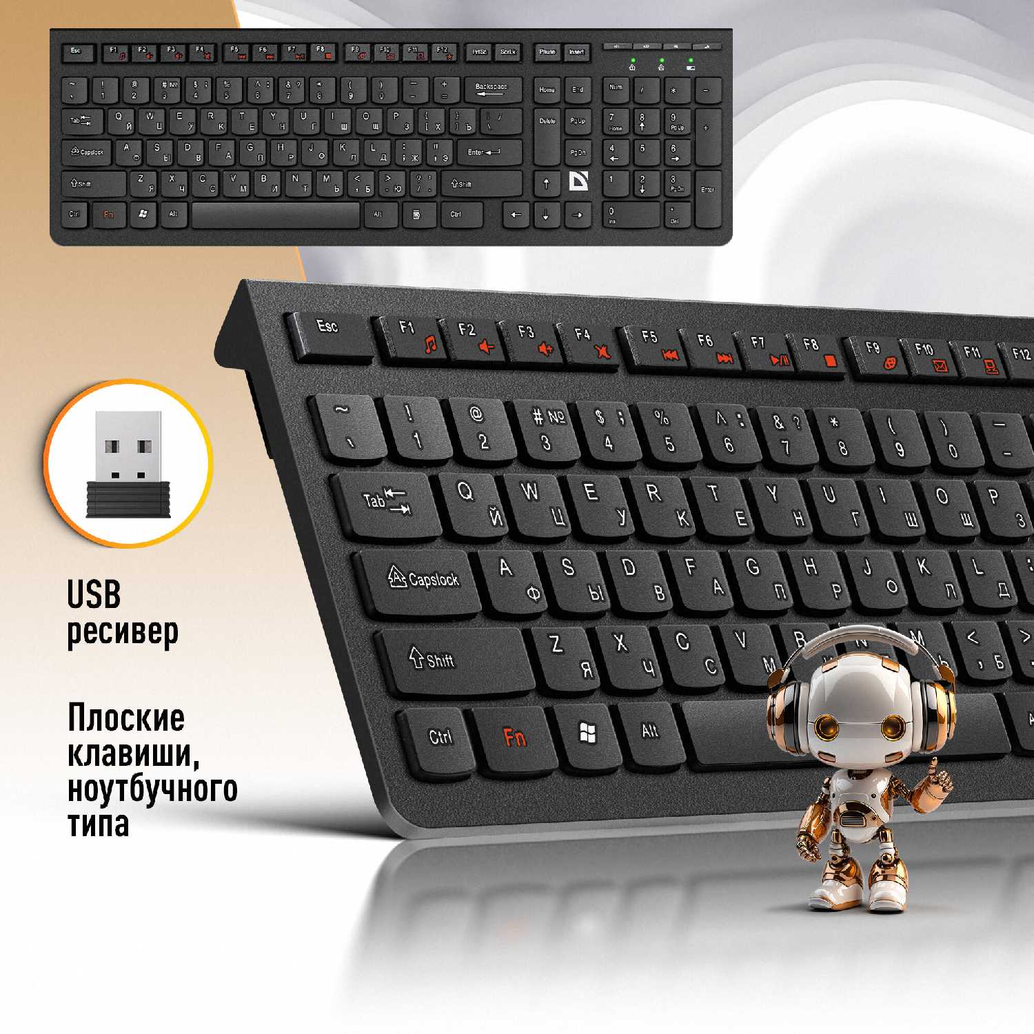 - Компактный дизайн и низкопрофильные клавиши: