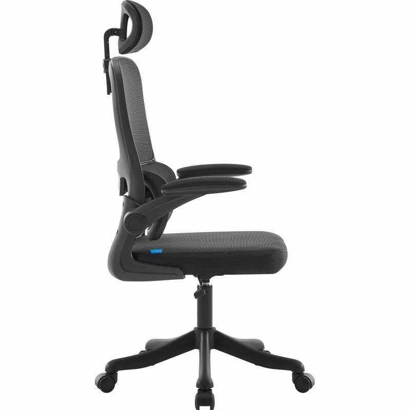 - Подъем подлокотников позволяет настроить их под локти, снижая напряжение в плечах и руках при работе за компьютером в течение нескольких часов.
