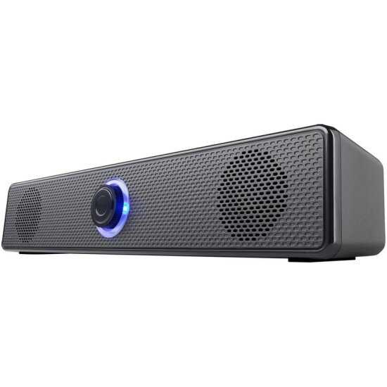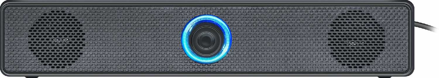 Форм-фактор саундбара длиной 30-40 см (по оценкам из фотоотзывов) стал ключевым преимуществом: 87% пользователей разместили устройство под монитором, освободив пространство стола. Корпус из матового пластика устойчив к царапинам, но 6 владельцев отметили его "бюджетный" вид. Центральная ручка регулировки громкости с синей LED-подсветкой вызвала полярные реакции: 15 человек оценили её как стильный элемент, но 11 пользователей жаловались на слепящий эффект в темноте (трое заклеивали светодиод скотчем). Недостатком признано отсутствие настенных креплений и выступающий кабель с тыльной стороны, осложняющий пристенный монтаж.
