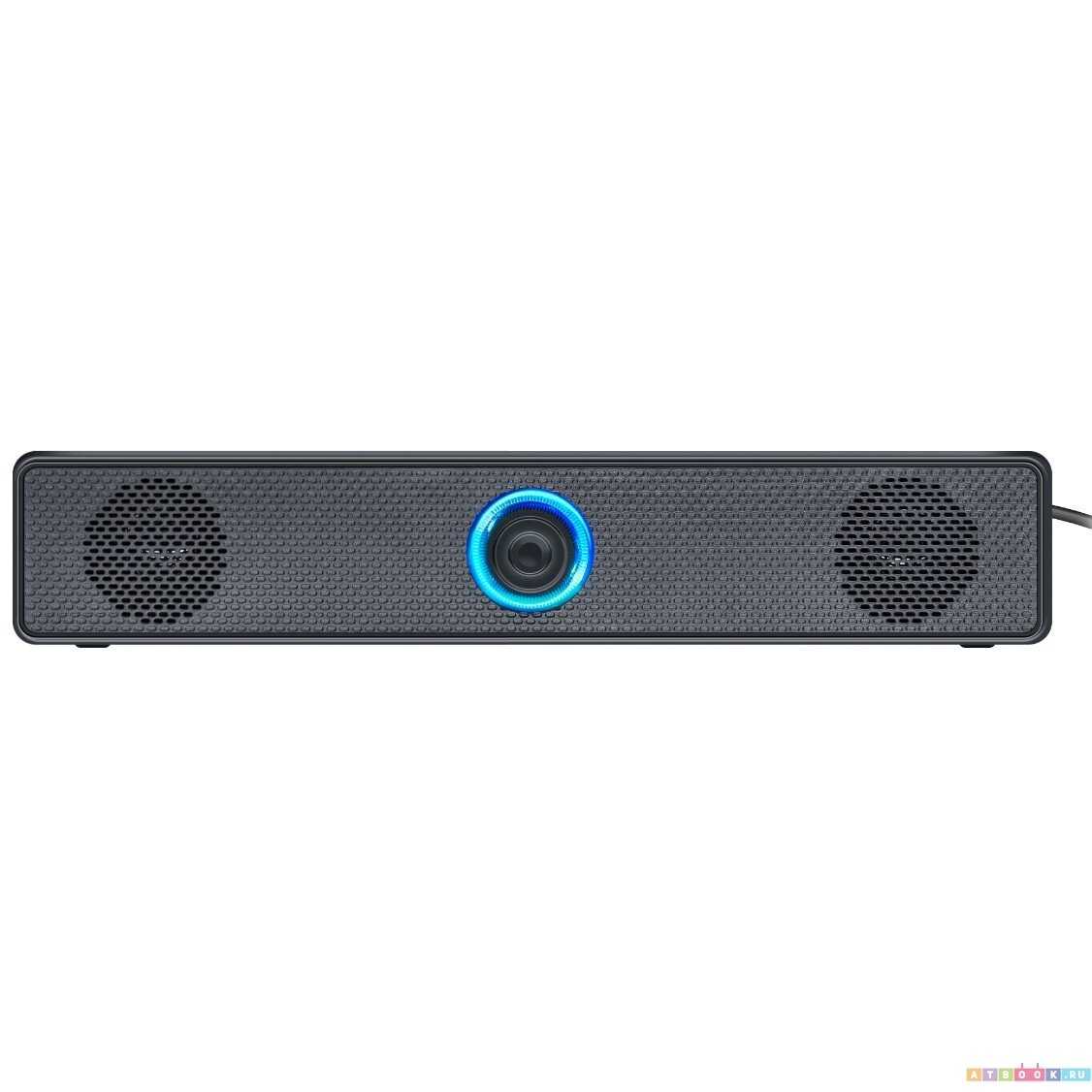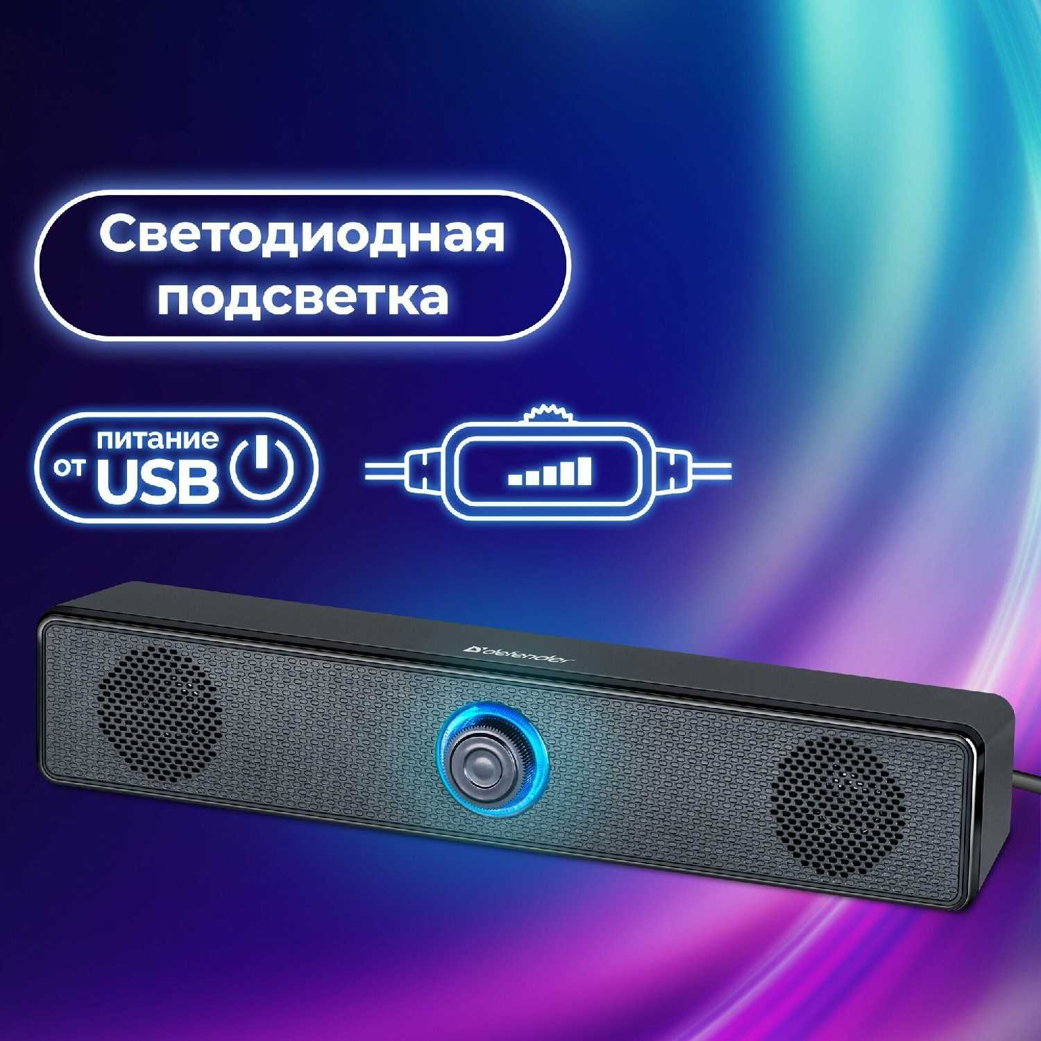 Саундбар питается исключительно через USB-порт: работает от ПК, ноутбука, сетевого адаптера (5V) или powerbank. Это исключает необходимость розетки, но при подключении к компьютеру может возникать фоновое гудение, решаемое переключением на внешний блок питания. -