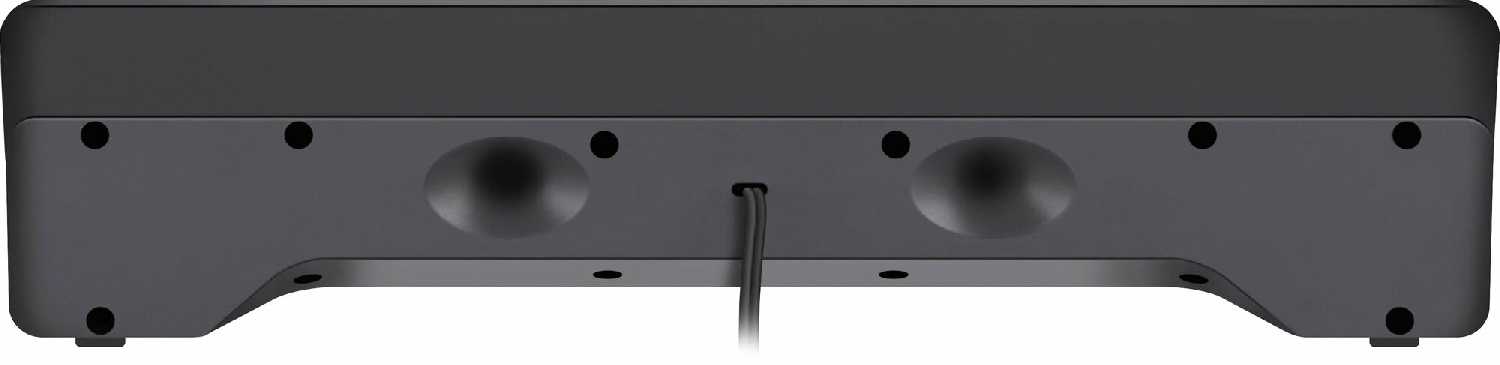 Форм-фактор саундбара (длинный узкий корпус) идеален для установки под подставкой монитора. Габариты 30-40 см позволяют разместить его даже в стесненных условиях, освобождая стол. Однако высота корпуса (около 5 см) требует проверки зазора между стойкой монитора и столом. -