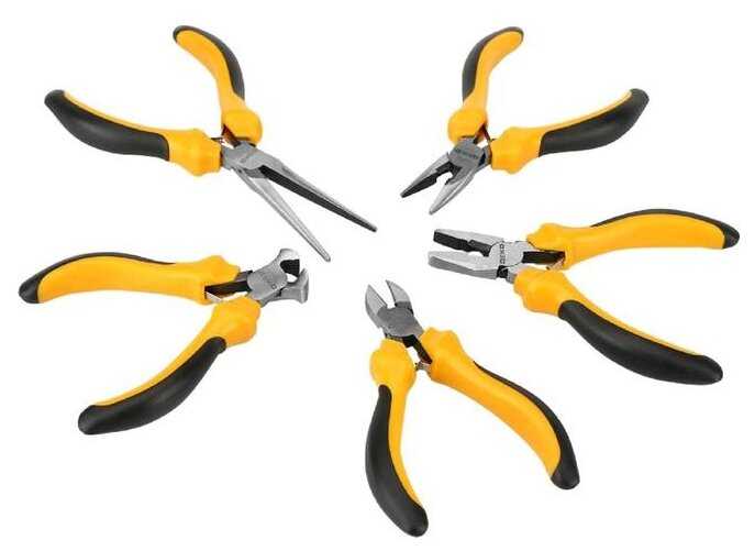 - Включает пассатижи, плоскогубцы, кусачки и другие, что избавляет от поиска отдельных предметов.