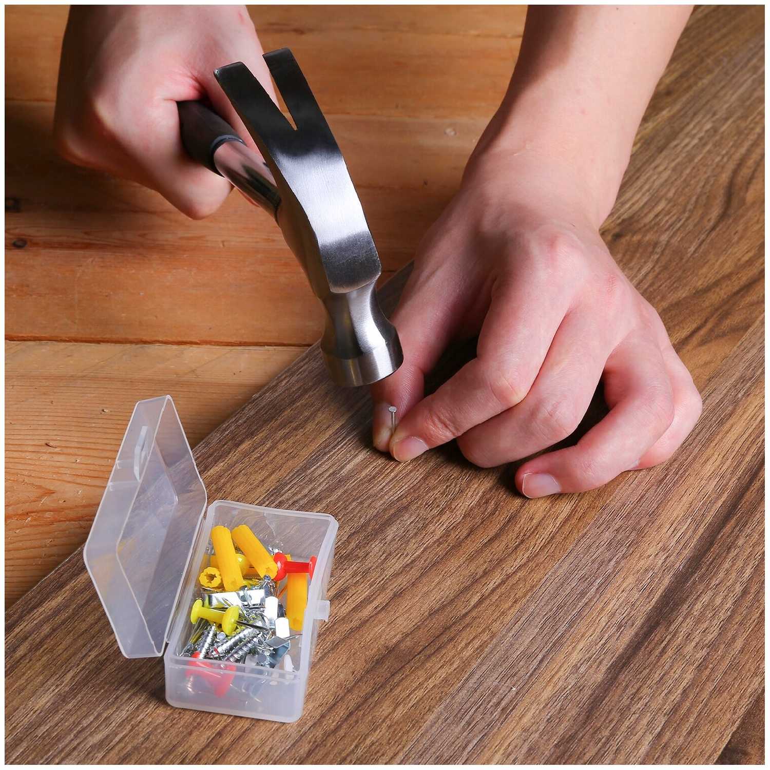 Ручной инструмент подробно : | молоток-гвоздодер 8 унций, строительный нож 18мм, держатель пильного лезвия 6", пильное лезвие 6", изолента 5м |
