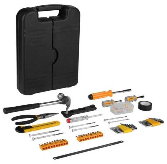 - + Для набора ручного бытового качественного инструмента в широком ассортименте из 142 часто необходимых в домашнем хозяйстве предметов низкая цена . В удобном легком чемоданчике есть все или почти все для хозяйственных столярно - слесарных небольших работ для пенсионера
