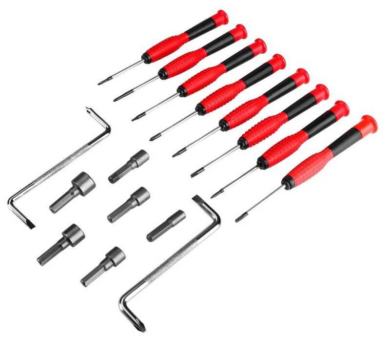 - + Отличный и качественный набор, очень радует наличие угловых отвёрток( воротков), удобный хват хороший материал.