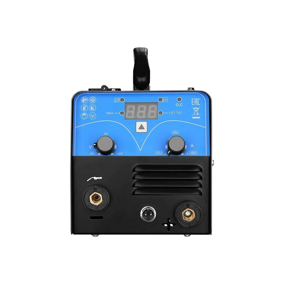 - Требует ручной подстройки тока на ощупь, что снижает точность сварки электродов 3 мм и приводит к прожогам металла толщиной 2-4 мм в MMA-режиме.