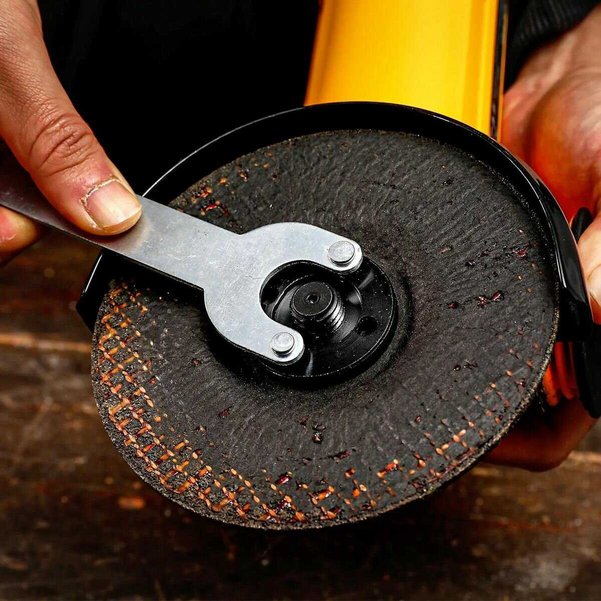 - - Сразу после распаковки возникли проблемы. Пытался вставить диск, но вторая попытка уже не удалась, механизм заклинило. Хорошо, что с обычной болгаркой подошва подошла без вопросов. Пришлось срочно ставить редуктор в удобное положение для себя. Открутил четыре шурупа, и вот якорь с щетками защелкнулись. Пришлось снимать кожух с нижней части. Снял крышку, разобрал щетки. Тут увидел, какая-то резинка там запихана в районы подошвы. Оказалось, эта резинка во второй вход нижней подошвы, но на заводе её поставили криво, и её подстерло якорем. Поставил остатки на место, где работает. В общем, эти первые десять минут знакомства с устройством получились настоящим приключением. Надеюсь, дальше будет спокойнее.