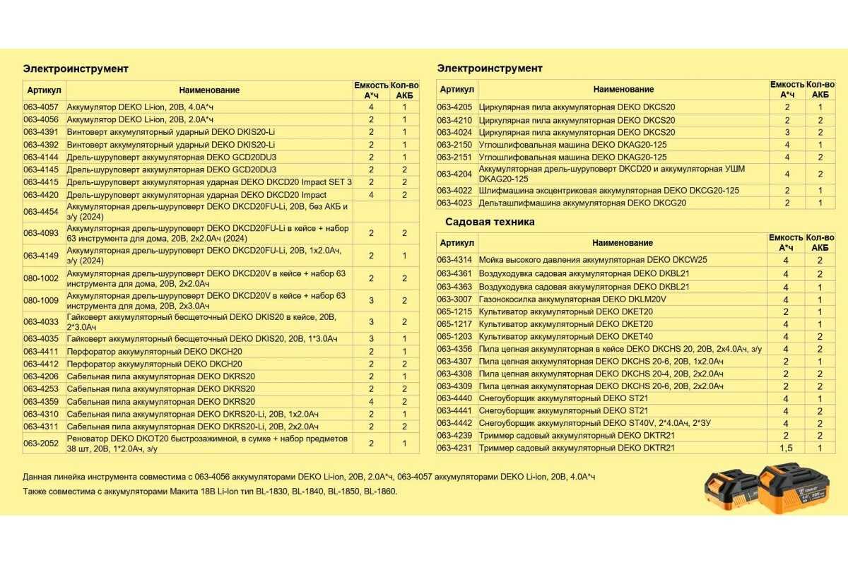 Подходят аккумуляторы deko (совместимы с макита), цена.