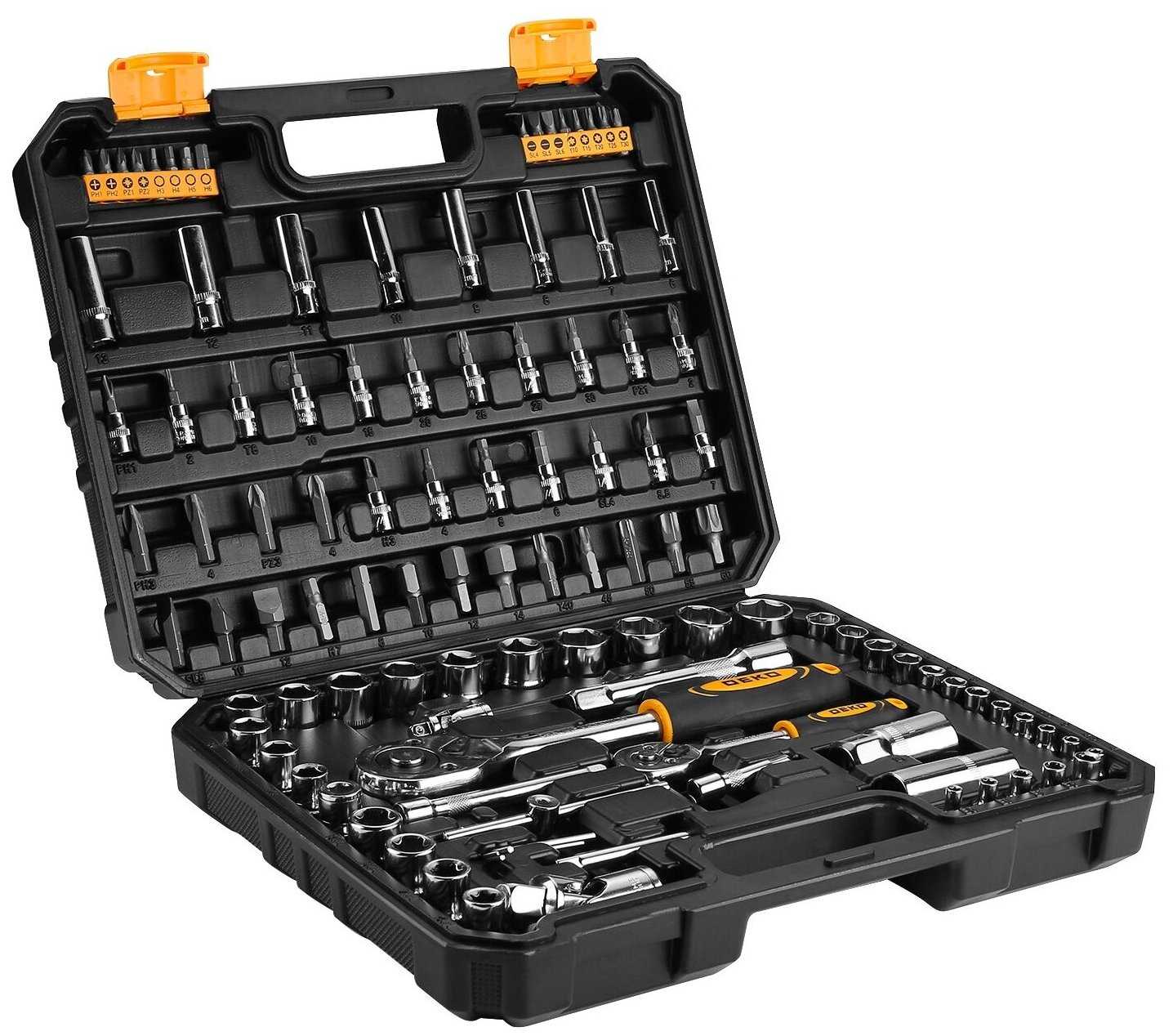 Дополнительная информация : | Адаптер *2 шт. (1/4"x 6.35 мм, 1/2"x 8 мм), универсальный шарнир *2 шт. (1/4", 1/2"), удлинители *3 шт. (1/4"x2, 4", 1/2"x5"), вороток *1 шт. 1/4", держатель для головок *1 шт. 1/4", гаечный ключ с трещоткой *2 шт. (1/4", 1/2"). |