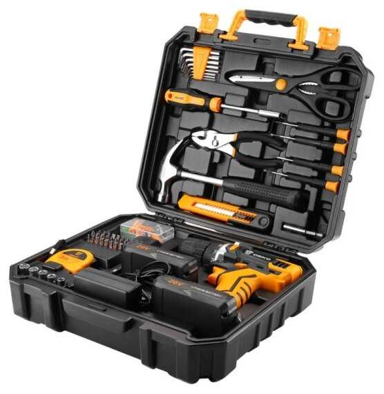 - В комплекте кейс, большой набор бит, сверла и инструментов, что делает его готовым решением для дома и дачи.
