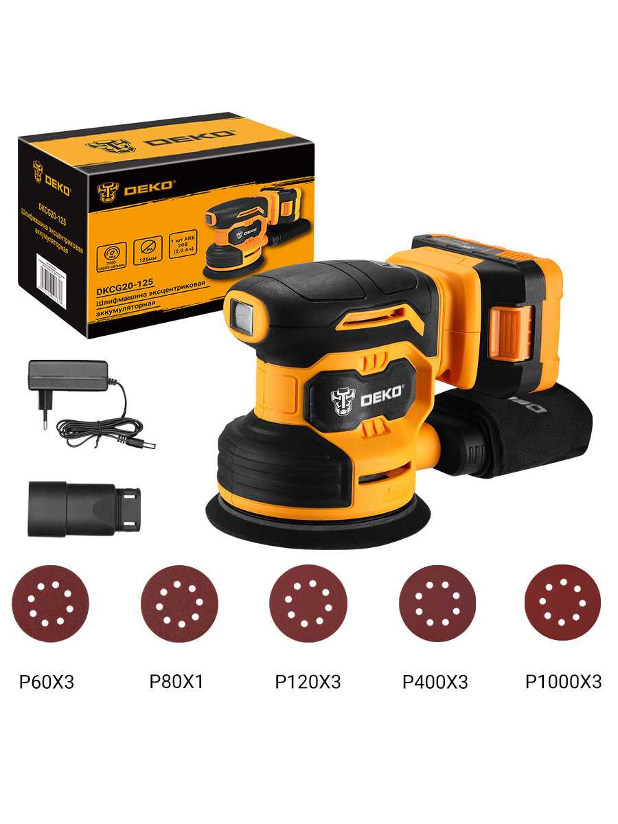 Отзывы о Шлифмашина эксцентриковая аккумуляторная DEKO DKCG20-125 [20В]