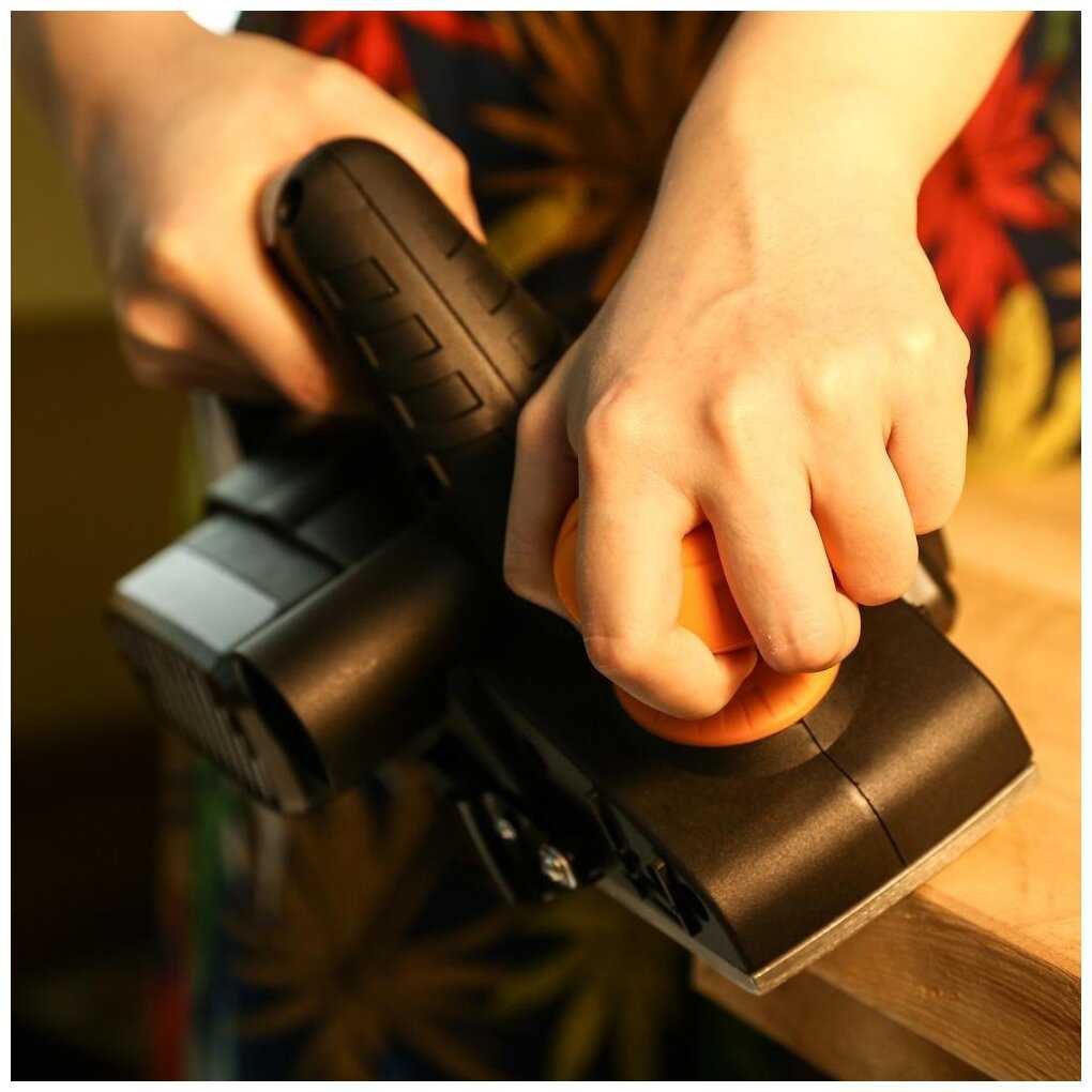 - Мотор не теряет мощность на сучках — при глубине строгания 1,5 мм инструмент проходит их без полной остановки.