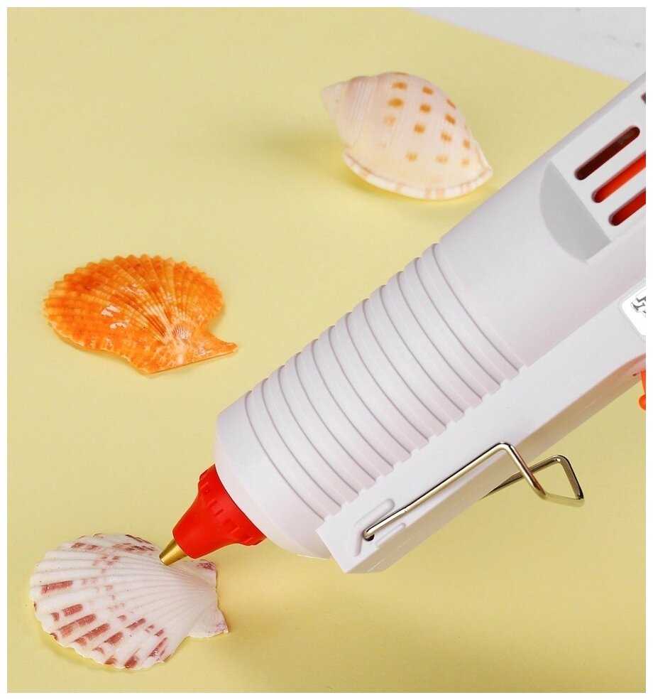 - Удобный регулятор позволяет быстро переключаться между нагревом для мелких и крупных объемов клея.