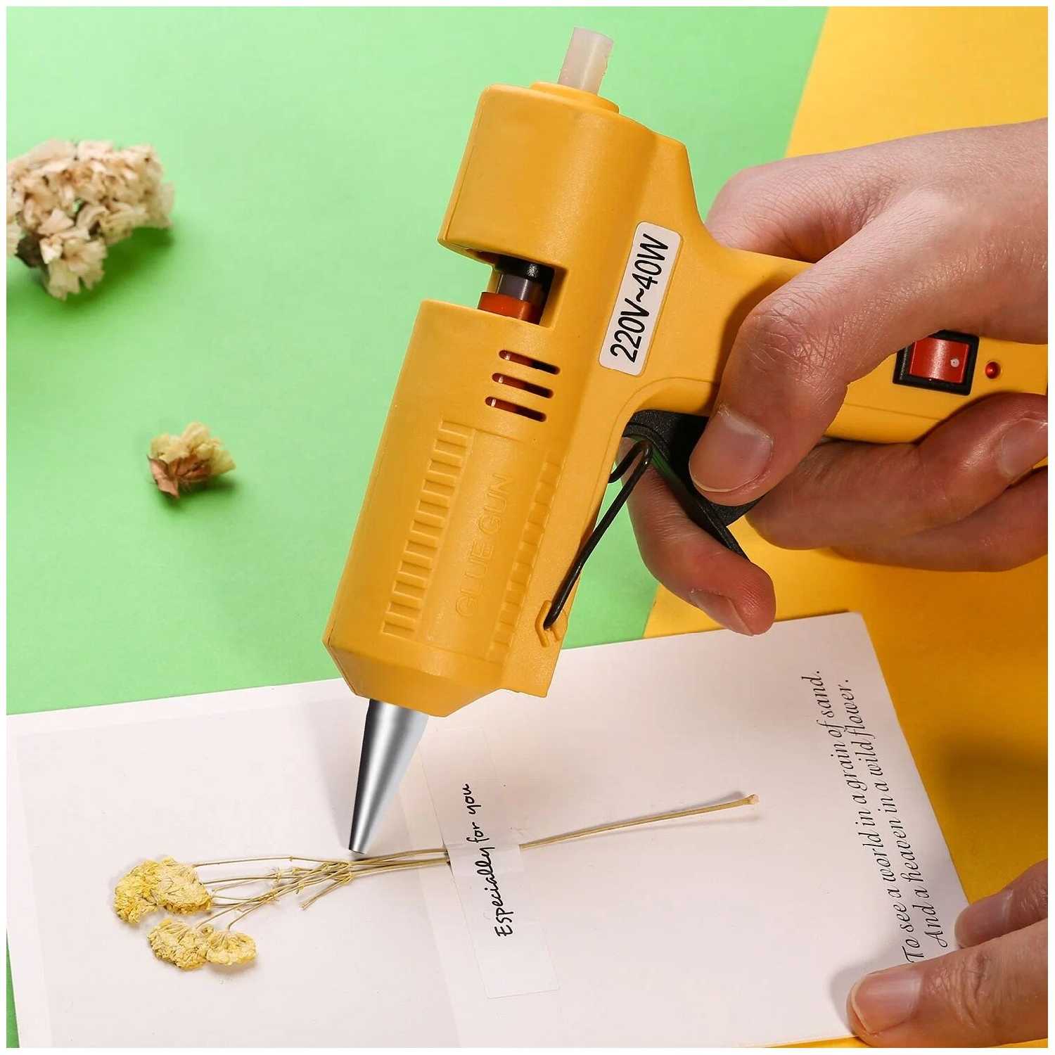 Быстро нагревается для этой мощности, хорошо выходит клей. Разноцветный клей в комплекте.