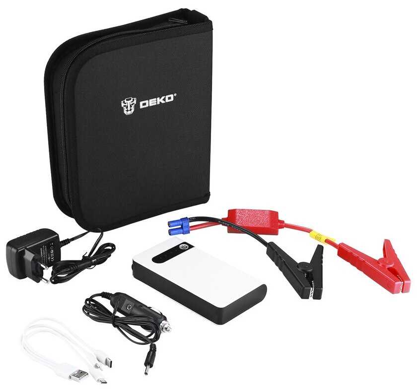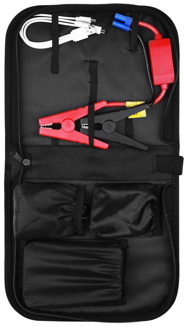| Дополнительная информация : | В комплект входят зажимы для запуска автомобиля и зарядное устройство. Удобный чехол, закрывающийся на молнию, продлит срок службы проводов и устройства при транспортировке. |