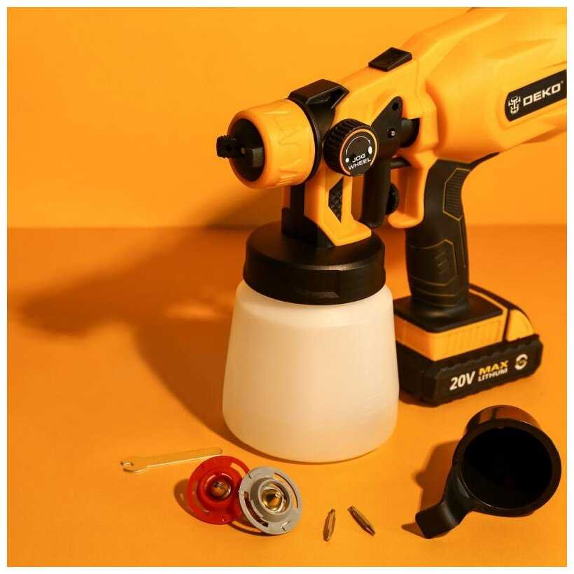 В общем краскопульт меня устраивает.Только пришлось специально купить шуруповерт ДЕКО с АКБ за 2800 руб ,который подходит к данному краскопульту.А так же купил пластмассовый кейс за 199 руб,чтобы укладывать краскопульт в разобранном виде.