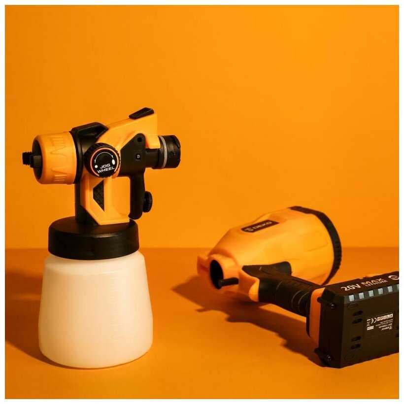 Акриловую краску правильно разбавить что б не потекла и заряда краскопульта на дольше хватило. Пока одним акб работаешь, другой на зарядке. На покраску только скалодрома ушло 4 дня по 4часа. На комнату 2акб в один слой за час. Я им очень доволен. Когда работали компресором везде туман стоял от краски.