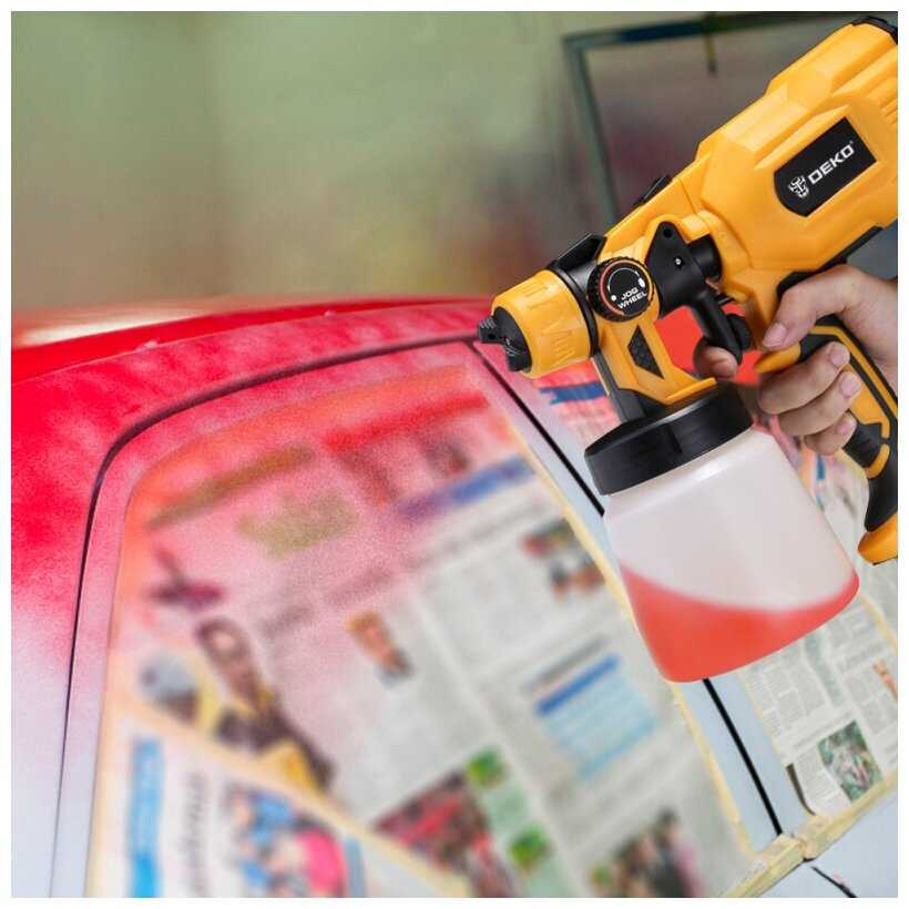 Попробовал данный краскопульт, но мощности при работе с водоэмульсионной краской не достаточно. Пришлось приобрести из этой же серии сетевой Деко DK5655K1 на 550 Вт.