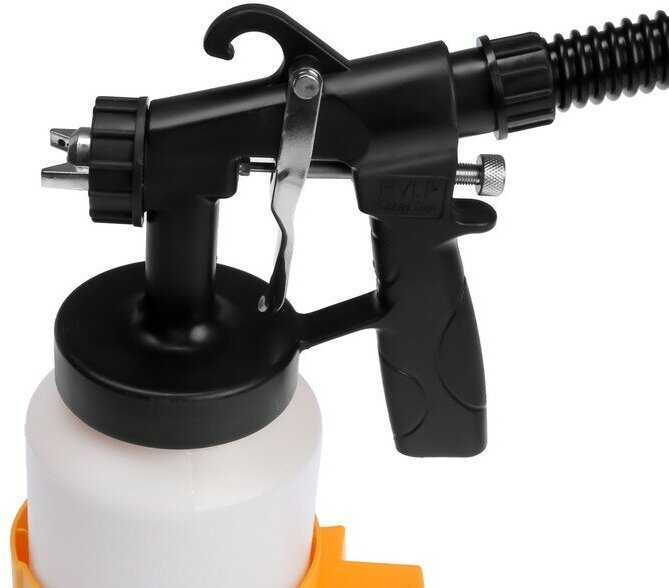 Регулировка осуществляется механическим поворотом сопла: вертикальный или горизонтальный факел. Интенсивность подачи меняется винтом на рукоятке, однако пользователи отмечают, что настройка требует практики — при неправильной вязкости краски факел сужается до 10-15 см, что усложняет работу. -