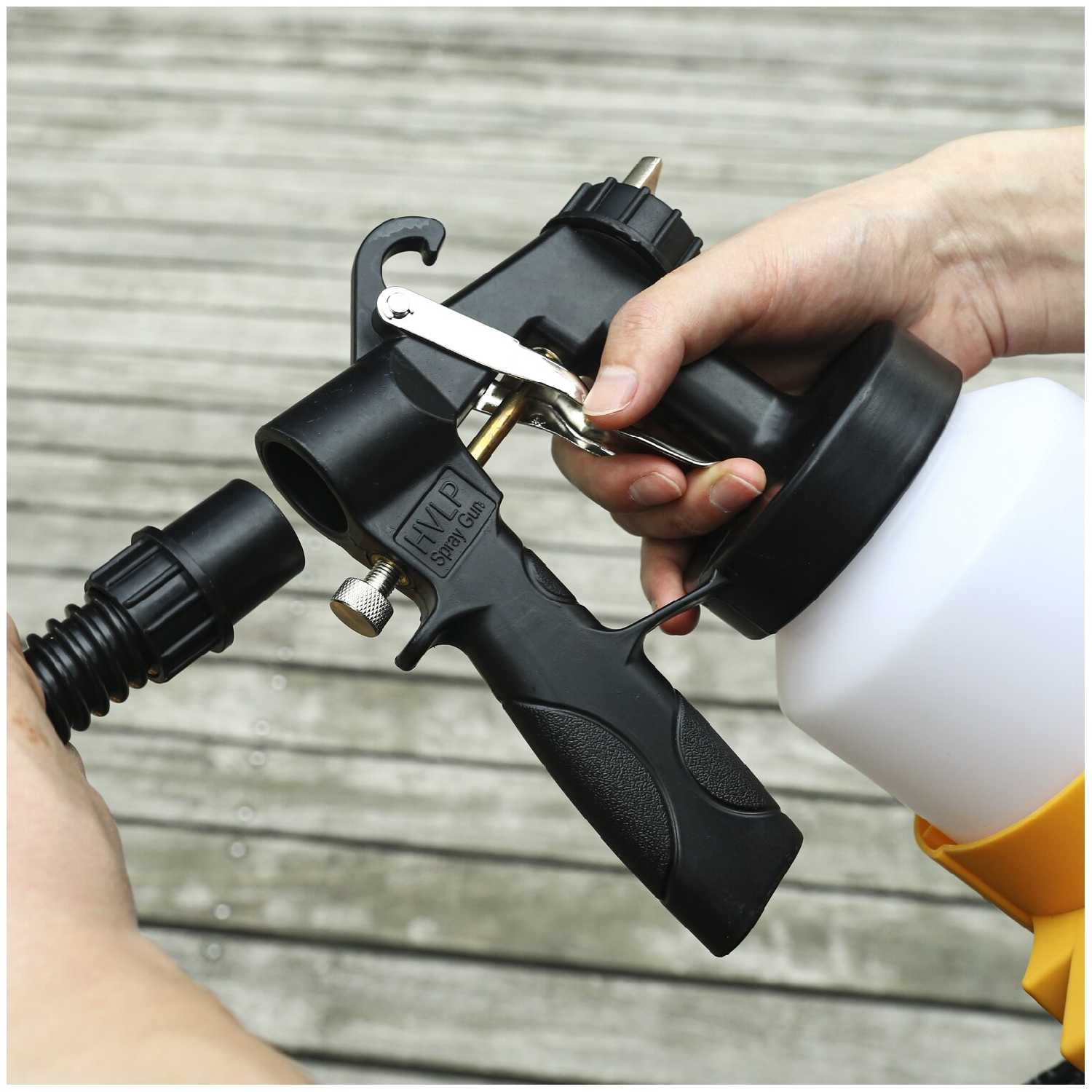 - Съемный резервуар упрощает очистку и быструю замену краски во время работы.