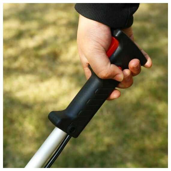 - Расположение кнопки включения на руле (как у бензиновых аналогов) позволяет быстро управлять триммером без изменения хвата.