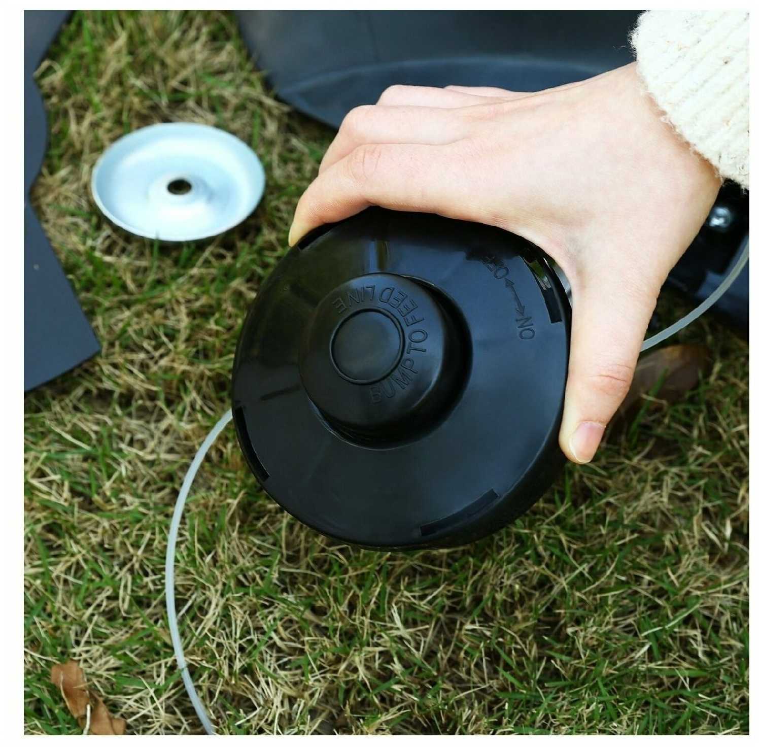 - Леска в комплекте низкого качества (круглого сечения) быстро изнашивается и плохо режет густую траву.