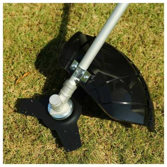 - Двигатель демонстрирует высокую производительность: справляется с густой травой, толстостебельными сорняками и даже небольшими кустарниками.