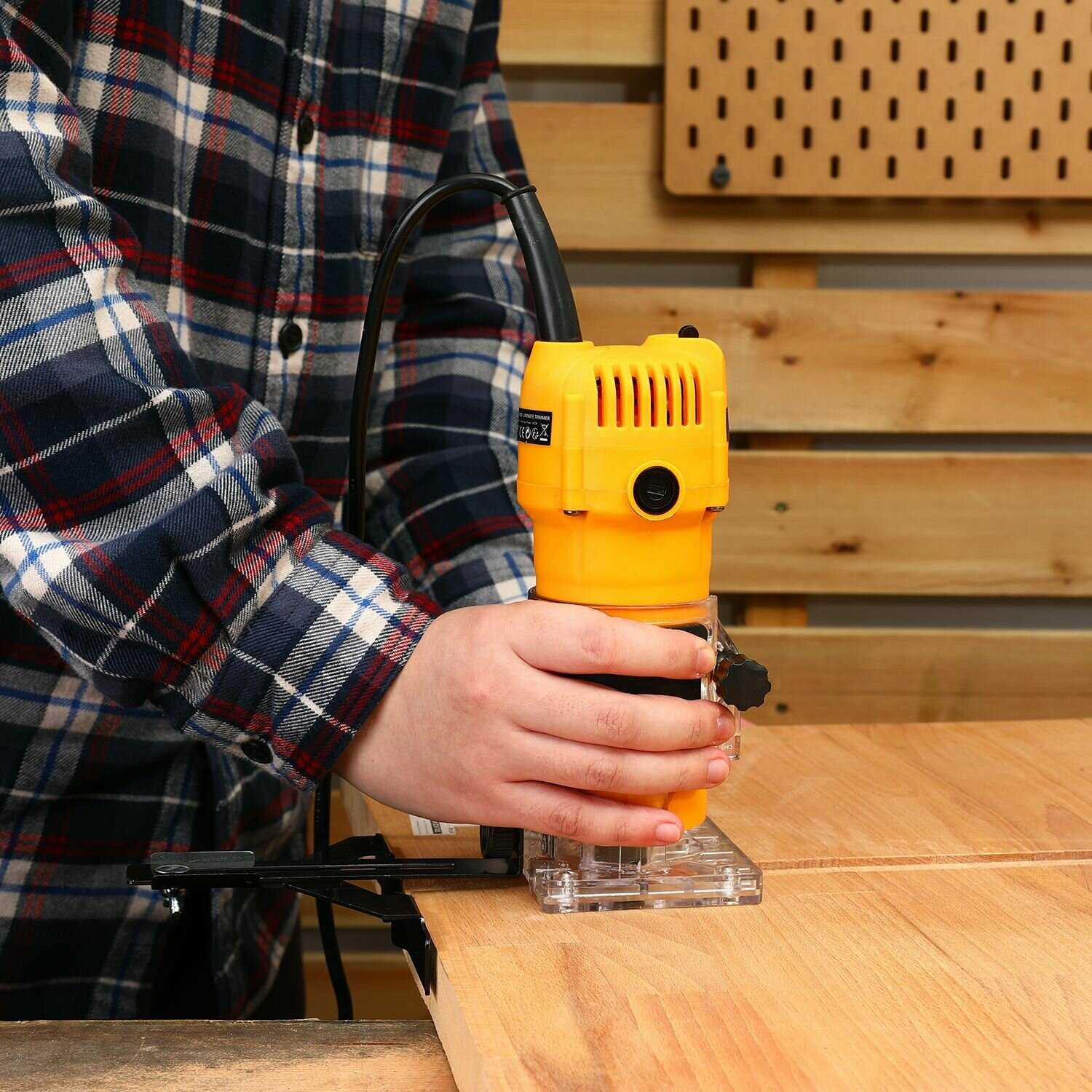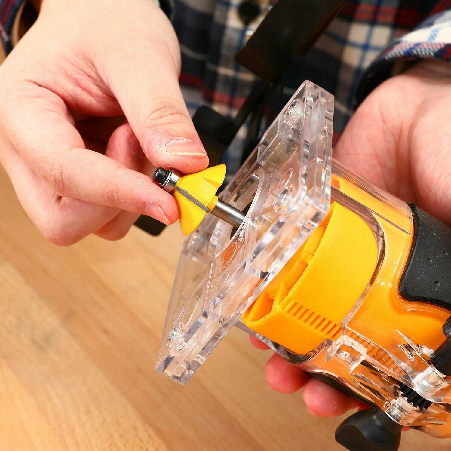 - + Компактный размер, удобно держать в руке. Целых 12 фрез в комплекте. Также с комплекте есть боковой упор и упор для кромок.