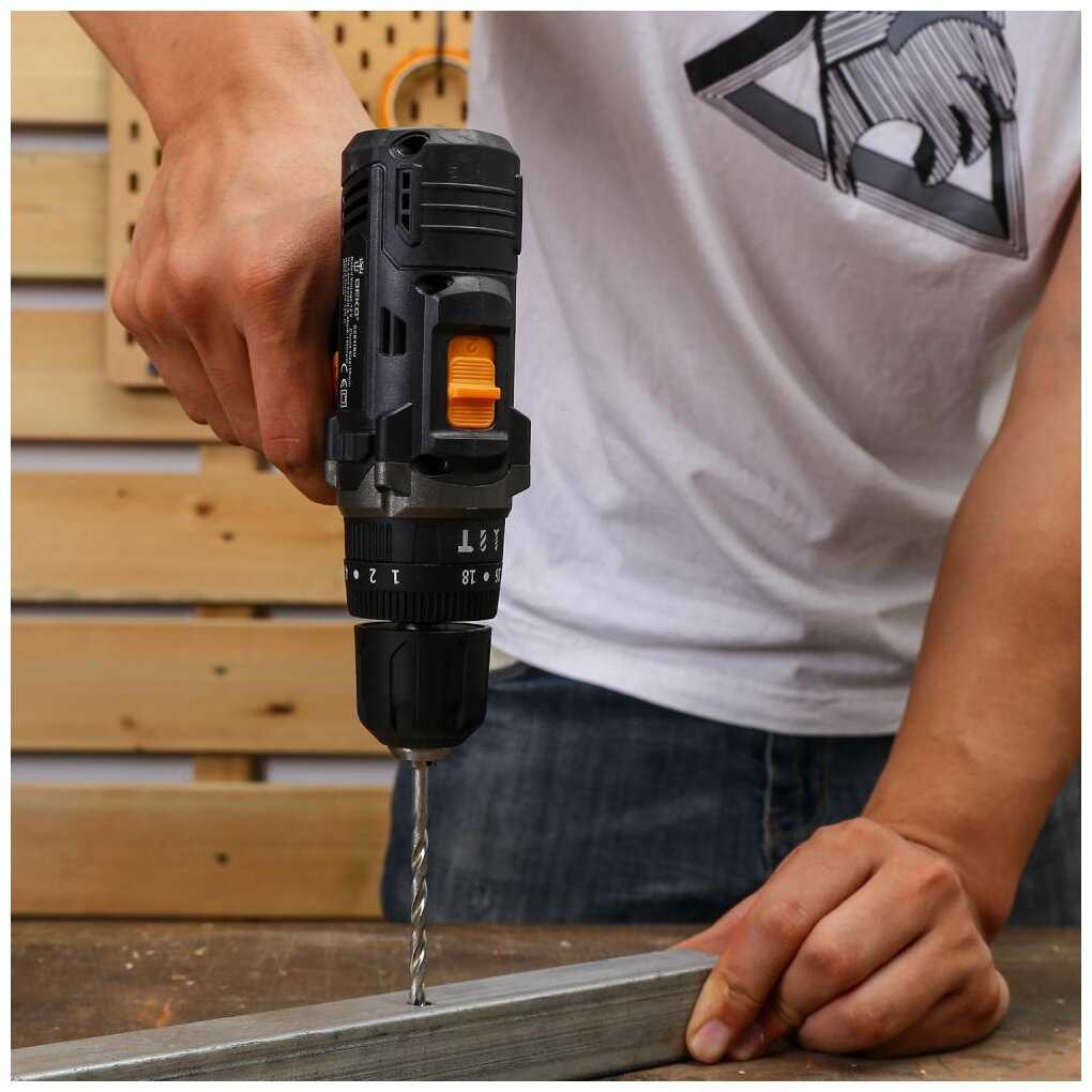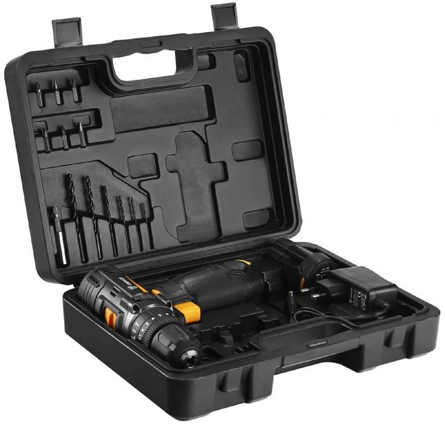 Как шуруповерт с доп. опцией дрели отлично подходит для домашнего использования, удобный кейс для хранения и 2 аккума в комплекте