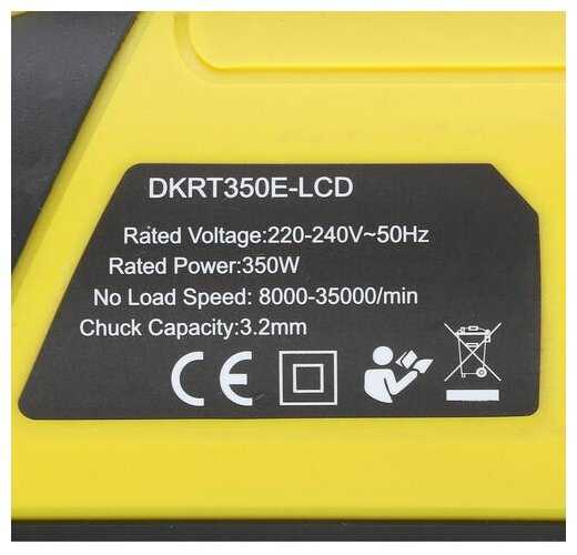 Фактическая мощность гравера составляет около 70-90 Вт при нагрузке, несмотря на заявленные 350 Вт. Диапазон оборотов — от 8 000 до 35 000 об/мин, регулируется электронным блоком с индикацией на LCD-дисплее. При отключении питания настройки скорости сбрасываются на минимальные 8 000 об/мин, что подтверждается замерами пользователей. -