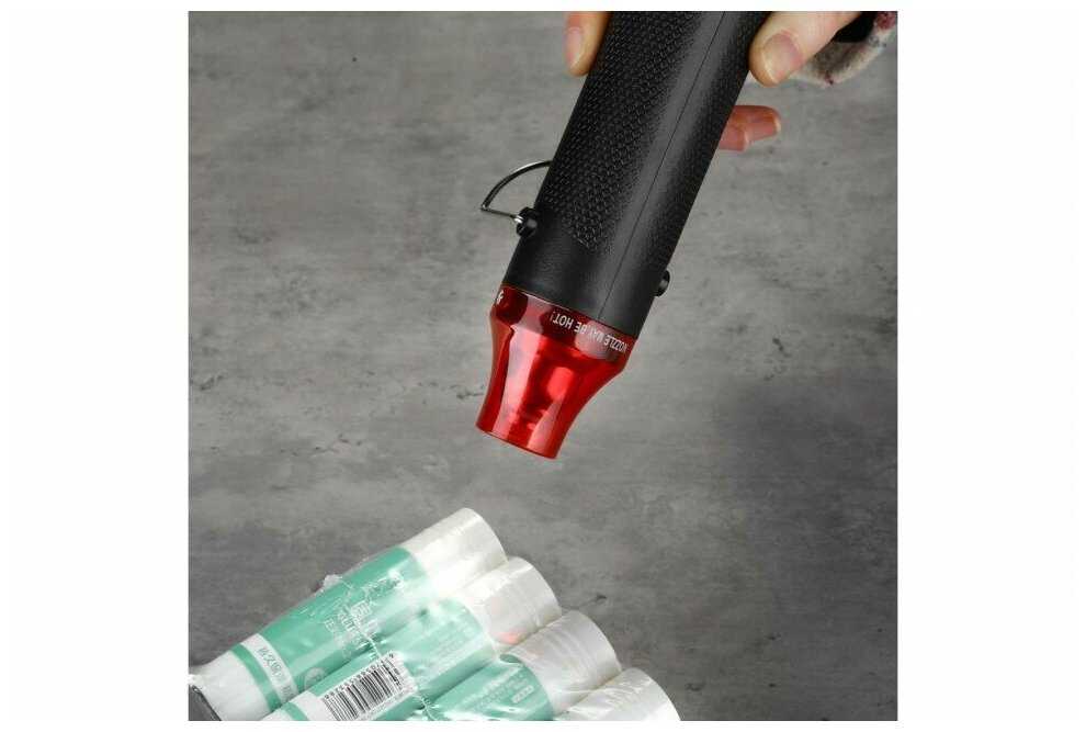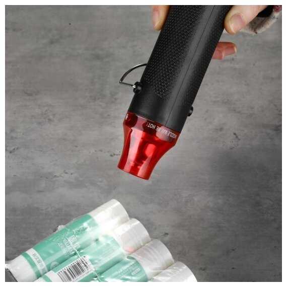 - Достигает рабочей температуры (около 200°C) за 15–20 секунд, что ускоряет выполнение задач вроде термоусадки трубок или снятия наклеек.