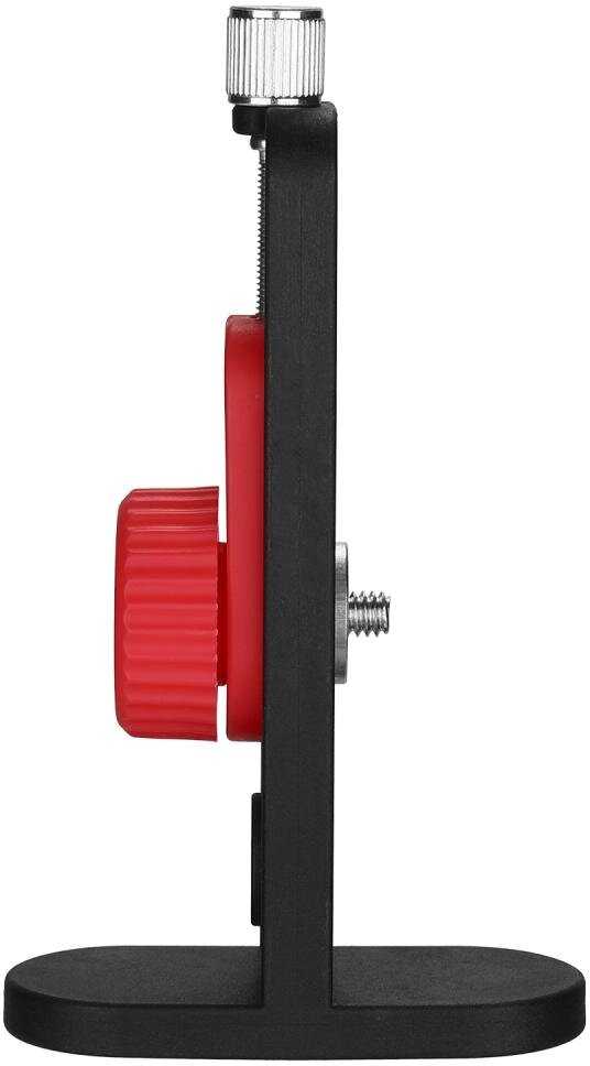 Алюминиевый переходник поддерживает резьбы 1/4" и 5/8", но имеет мелкое посадочное гнездо. При установке на штативы Bosch требуется подкладка шайб. Отсутствие магнитного крепления компенсируется резиновой подошвой с хорошим сцеплением на ровных поверхностях. -