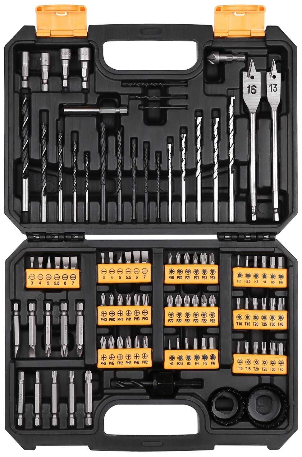 Технические параметры и универсальность:Набор охватывает базовые потребности: включает свёрла по дереву, металлу, бетону, биты PZ, PH, SL, Torx, головки на 7–14 мм и коронки до 39 мм. Для дрелей и шуруповёртов подходит без адаптеров, но ручной держатель отсутствует. Диаметр свёрл по металлу (1–10 мм) и бетону (4–10 мм) покрывает большинство бытовых задач, однако тонкие свёрла (менее 2 мм) критикуют за хрупкость. Коронки по дереву работают без сколов, но их ресурс ограничен. Отдельно отмечают совместимость с электроинструментом DeKo, что упрощает подбор оснастки.